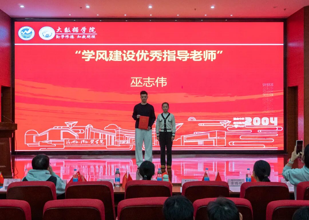 第三,强化集体观念,凝聚奋进合力,做学院发展的建设者。学院的发展离不开每一位同学的参与和贡献。希望获奖同学能充分发挥示范引领作用,积极参与学院组织的各项活动,主动为校园建设和管理建言献策。要注重团结协作,互帮互助,携手营造更加优良的学风、更加和谐的校园环境,共同助力大数据学院各项事业再上新台阶。