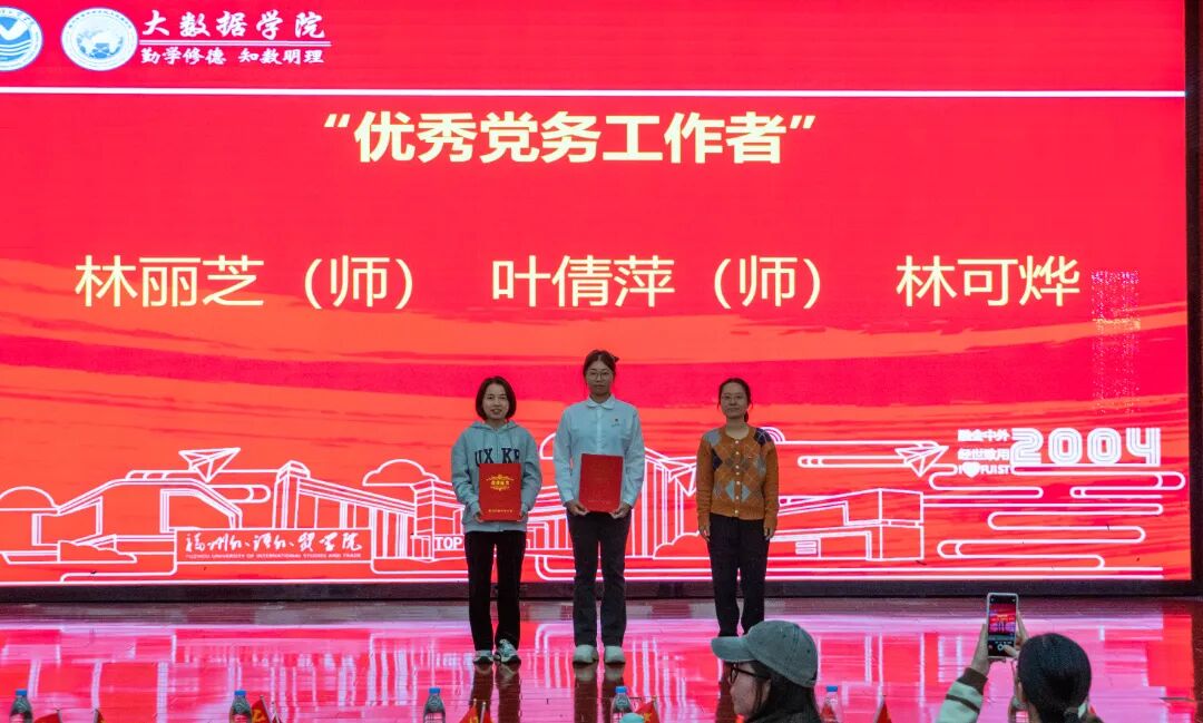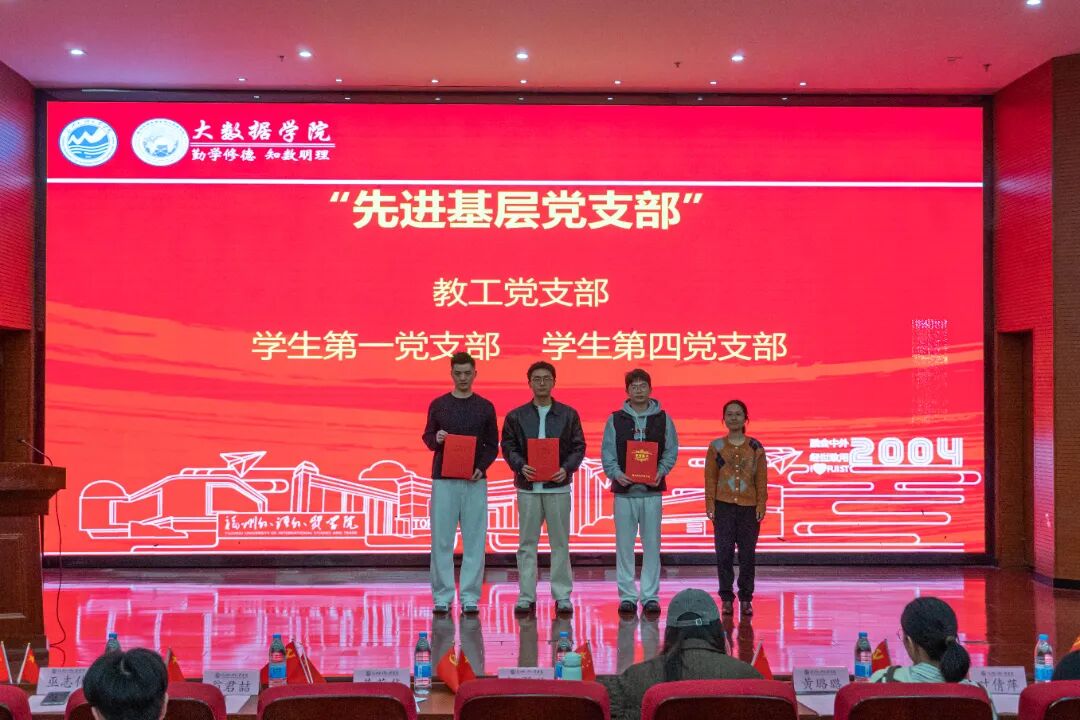 分党委副书记黄荣华老师宣读《中共乐鱼网页版大数据学院委员会关于表彰优秀共产党员、学习强国学生标兵、优秀党务工作者、先进基层党支部的决定》