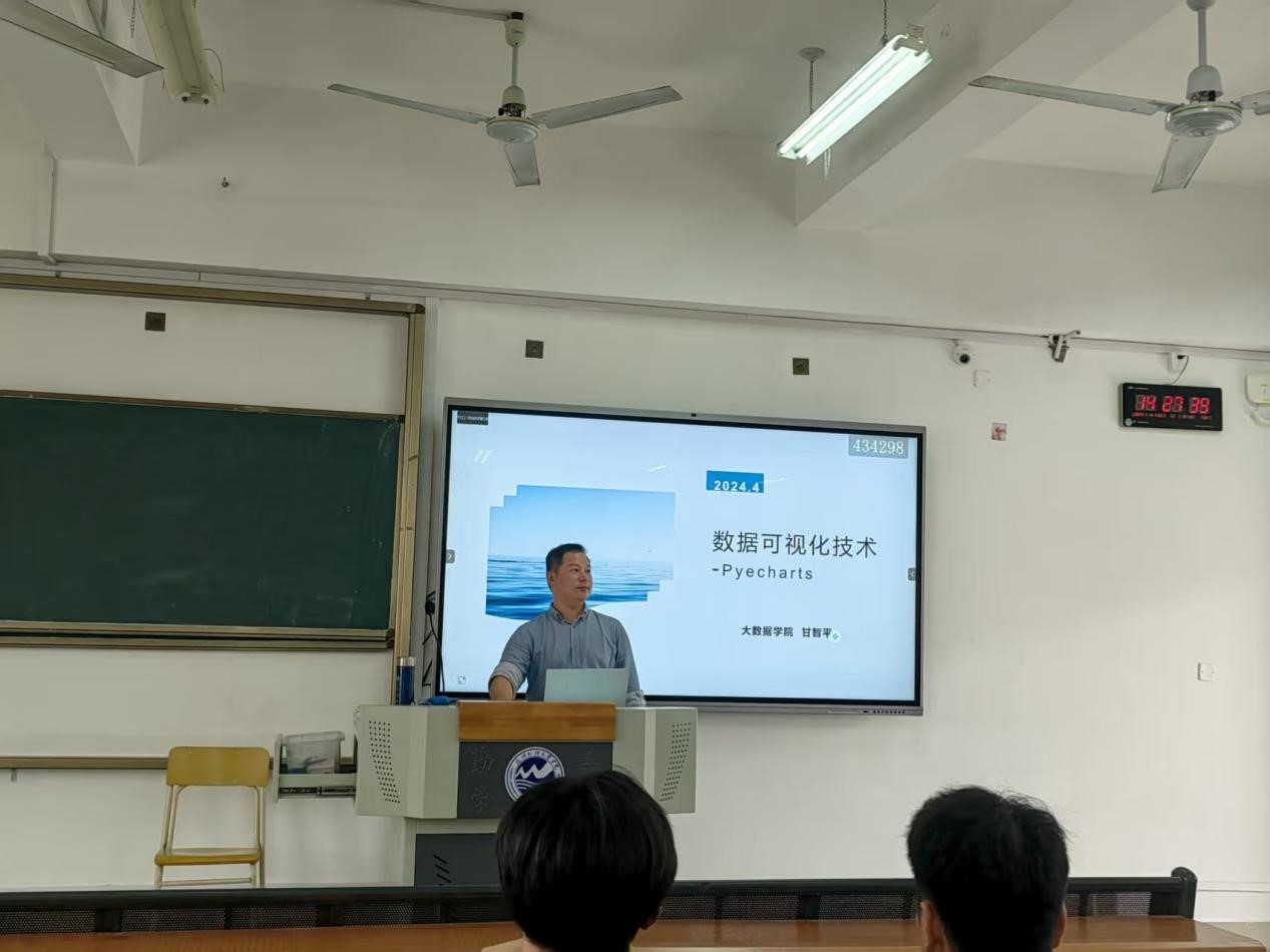 【教学动态】大数据学院开展“‘信息技术+’示范课堂”活动 为推进信息技术与教育教学深度融合,探索信息化背景下课堂教学模式创新,充分发挥优秀教师的示范引领作用,2024年4月9日(周二)下午,我院甘智平老师在西区教学2号楼203教室开展“‘信息技术+’示范课堂”公开课活动。学院师生积极参加参与观摩学习。 本次示范课以《数据可视化技术》课程中的第二章可视化常用技术为授课内容,老师紧扣“信息技术赋能教学”的核心目标,立足学科特点与学生学情,综合运用智慧教学平台、虚拟仿真实验系统、互动式多媒体课件及图表数据分析工具Echarts,构建了“课前-课中-课后”全流程数字化教学场景,生动展现了“信息技术+”背景下“以学生为中心”的课堂新生态。 大数据学院办公室 2024年4月10日