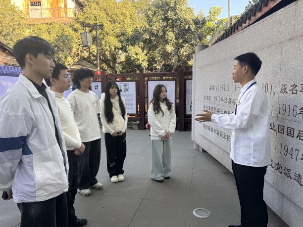 【数说红韵】大数据学院“数传薪火”宣讲团开展“立报国强国大志向,做挺膺担当奋斗者”主题宣讲活动 上一堂“行走的思政课”!11月21日下午,大数据学院“数传薪火”宣讲团走进吴石故居与纪念室,将宣讲课堂搬到历史现场。围绕“立报国强国大志向,做挺膺担当奋斗者”主题,宣讲团成员在追忆先辈峥嵘岁月中,引领同学们深刻领会二十届四中全会精神,激励大家将个人理想融入时代使命,争做挺膺担当的奋斗先锋。 在宣讲团成员的带领下,同学们步入吴石故居。泛黄的历史照片、珍贵的文献资料、复原的生活场景,生动还原了吴石将军投身革命、忠贞报国的一生。从早年求学立志救国,到为民族解放事业奔走奉献,同学们认真聆听将军坚守信仰、不畏艰险的英雄事迹,不时驻足凝视图片与文字,低声交流感悟,深刻体会到革命先辈“为国家尽忠、为民族尽责”的家国情怀。 在吴石将军纪念室,宣讲团成员紧扣本次活动主题,从吴石将军“不为党派、只为苍生”的抉择切入,提炼出“信仰是人民至上的生命抉择、是‘我将无我’的终生坚守、是渴望国家统一的切实行动”的精神内核。 活动落幕,同学们围坐一堂,主动分享走访吴氏故居与吴石将军纪念室的感悟:从故居旧迹中触摸岁月温度,于纪念室里体悟家国担当,观展时耳畔仿佛回响的历史足音、心底涌动的崇敬之情,还有对青年责任的全新思考,都在坦诚的交流中自然流淌,让每一份触动都有了共鸣与沉淀。 通过此次宣讲活动,大家纷纷表示,要以吴石将军的报国初心为笔,以挺膺担当为墨,在红色记忆与时代使命的交融里,让“报国强国”的信念从历史深处照进青春征程,以青春之我奋进强国之路。 大数据学院办公室 2025年11月28日