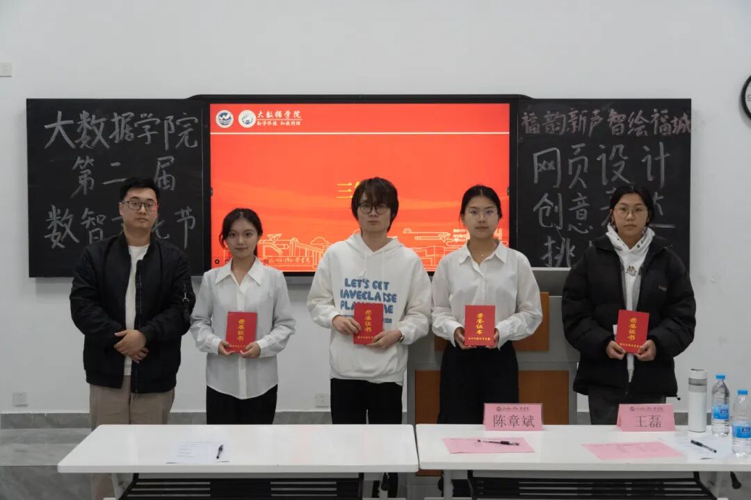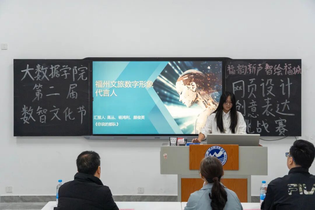【数智引航 创新未来】大数据学院第二届数智文化节之“福韵新声·智绘福城”网页设计创意表达挑战赛圆满结束! 为了以数字技术激活传统福文化的生命力,搭建校园智慧与城市文脉的对话桥梁,我院第二届数智文化节之“福韵新声·智绘福城”网页设计创意表达挑战赛于11月18日在长乐校区人文楼2-304拉开帷幕。本次大赛特邀陈章斌老师、郑逸凡老师、王磊老师担任评委,为赛事提供专业指导。 参赛选手作品展示 从容应队 铁道游记队 你说的都队 春山可望队 别和我作队 南波万队 福韵相连队 现场答辩环节 答辩现场氛围在评委与选手的问答中升温,评委围绕“网页效果实现逻辑”“核心技术与软件应用”“后续优化方向”关键问题深入交流。从代码细节拆解、设计适配建议到优化路径探讨。既让现场氛围热烈高涨,也助力选手精准把握作品短板明确了后续的改进方向。 获奖情况 经过各队的成果展示与评委老师的专业点评,大数据学院第二届数智文化节之“福韵新声·智绘福城”网页设计创意表达挑战赛获奖名单如下: 一等奖: 南波万队 二等奖: 你说的都队 别和我作队 三等奖: 从容应队 铁道游记队 福韵相连队 优秀奖: 春山可望队 总结点评 在本次大数据学院第二届数智文化节之“福韵新声·智绘福城”网页设计创意表达挑战赛的点评环节中,陈章斌老师对同学们作品彰显的创新探索精神予以高度认可。老师指出参赛作品基础扎实,但静态呈现为主的表现形式仍有优化空间,勉励大家深耕动态化、交互化设计,并着重强调,需强化理论与实践转化效能。 大数据学院第二届数智文化节“福韵新声 智慧福城”网页设计挑战赛,充分彰显数院学子的创意才情与专业功底。参赛选手以技术为基、创意为核,推动“福”文化与福城特色在数字化表达中焕发新活力。愿同学们秉持创新执着与文化热忱,深耕专业领域,续写奋进华章。 大数据学院办公室 2025年11月23日
