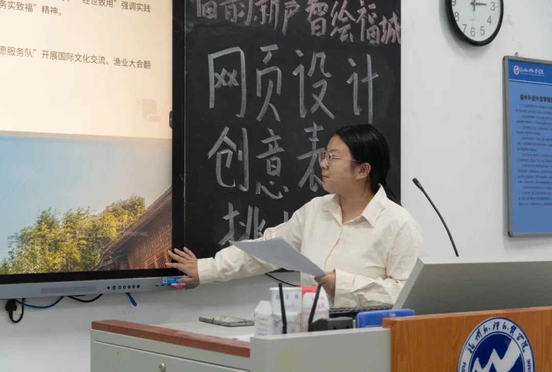 在本次大数据学院第二届数智文化节之“福韵新声·智绘福城”网页设计创意表达挑战赛的点评环节中,陈章斌老师对同学们作品彰显的创新探索精神予以高度认可。老师指出参赛作品基础扎实,但静态呈现为主的表现形式仍有优化空间,勉励大家深耕动态化、交互化设计,并着重强调,需强化理论与实践转化效能。