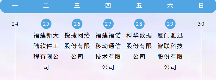 【就业早知道】大数据学院第十三周就业推文推送早知道 就业小贴士 一、求职前:自我认识,精准定位;明确职业方向;学习专业知识;培养通用技能。 二、求职中:多渠道求职,扩大范围;了解公司和岗位;模拟面试。 三、求职后:复盘求职过程,收集反馈意见;关注行业动态。 福建新大陆软件工程有限公司 01 招聘开始时间 2025.4.25 02 招聘网址 http://www.nlsoft.com.cn/ 03 招聘岗位 软件测试初级工程师 锐捷网络股份有限公司 01 招聘开始时间 2025.9.1 02 招聘网址 https://www.ruijie.com.cn/ 03 招聘岗位 硬件开发工程师 福建福诺移动通信技术有限公司 01 招聘开始时间 2025.9.3 02 招聘网址 https://funo1.zhiye.com/campus 03 招聘岗位 软件开发工程师(后端) 科华数据股份有限公司 01 招聘开始时间 2025.9.23 02 招聘网址 https://www.kehua.com.cn/ 03 招聘岗位 IT技术开发工程师 厦门雅迅智联科技股份有限公司 01 招聘开始时间 2025.9.29 02 招聘网址 https://yaxon.zhiye.com/campus/jobs 03 招聘岗位 嵌入式软件应用开发工程师 大数据学院办公室 2025年11月23日