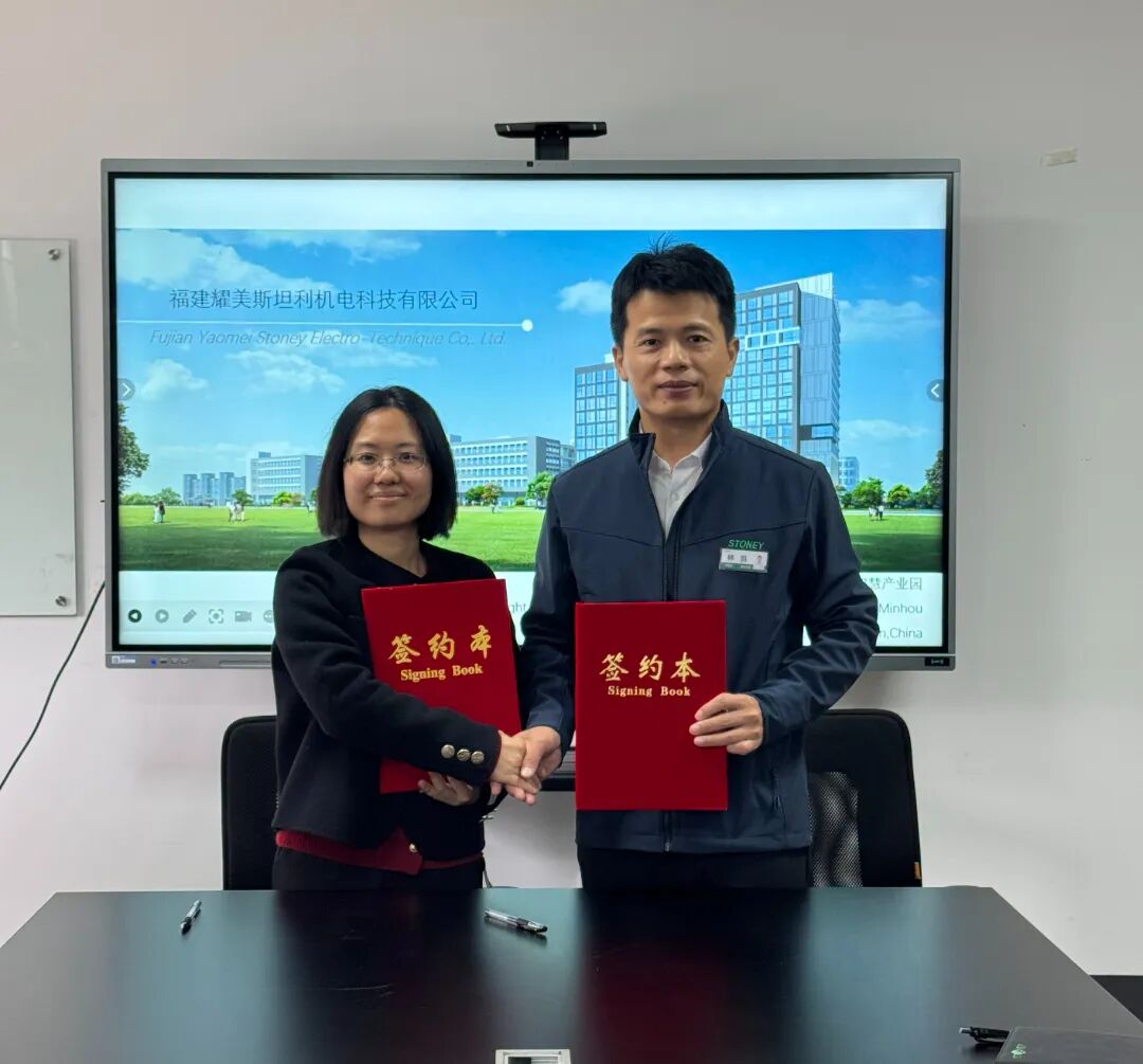 12月24日,我院与福建耀美斯坦利机电科技有限公司签订海外就业实习基地协议。副院长叶福兰,副院长、分党委书记汪翠茹,数智融创产业学院副院长陈焕辉及辅导员黄炜雅共同参加签约授牌仪式。