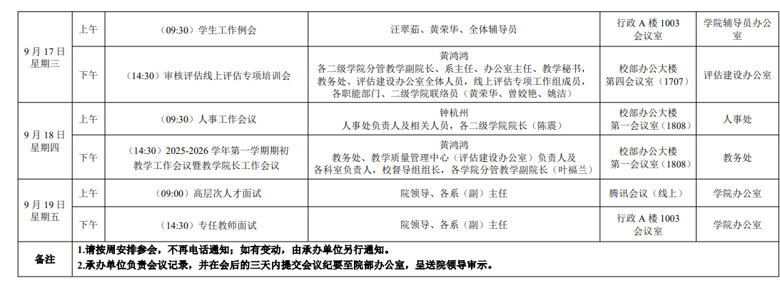 大数据学院 2025-2026 学年第一学期第 3 周活动安排表