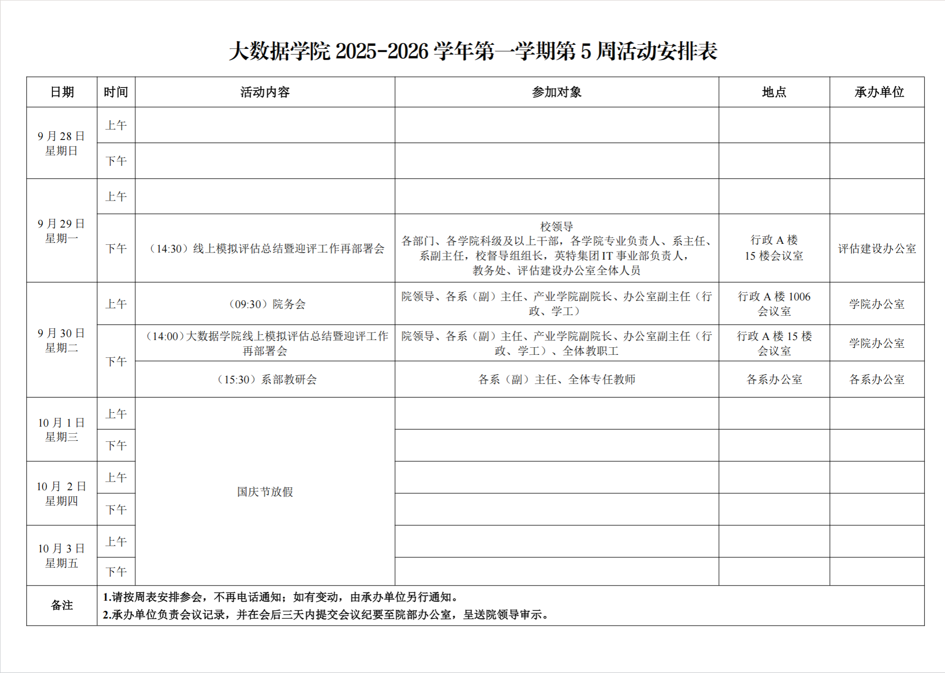 大数据学院2025-2026学年第一学期第5周活动安排表