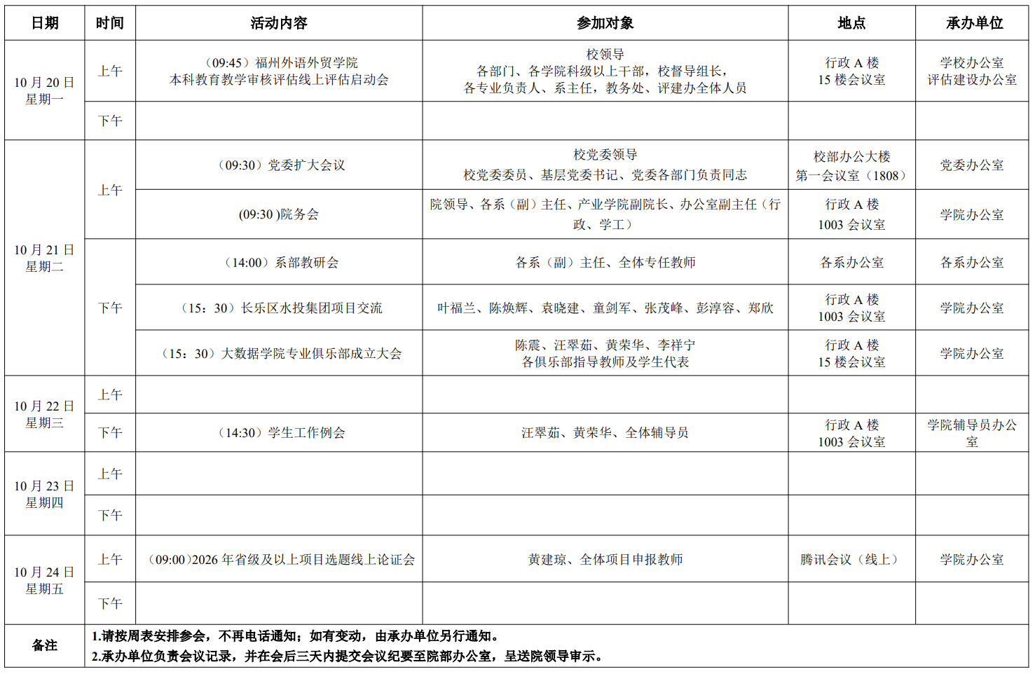 大数据学院 2025-2026 学年第一学期第 8 周活动安排表