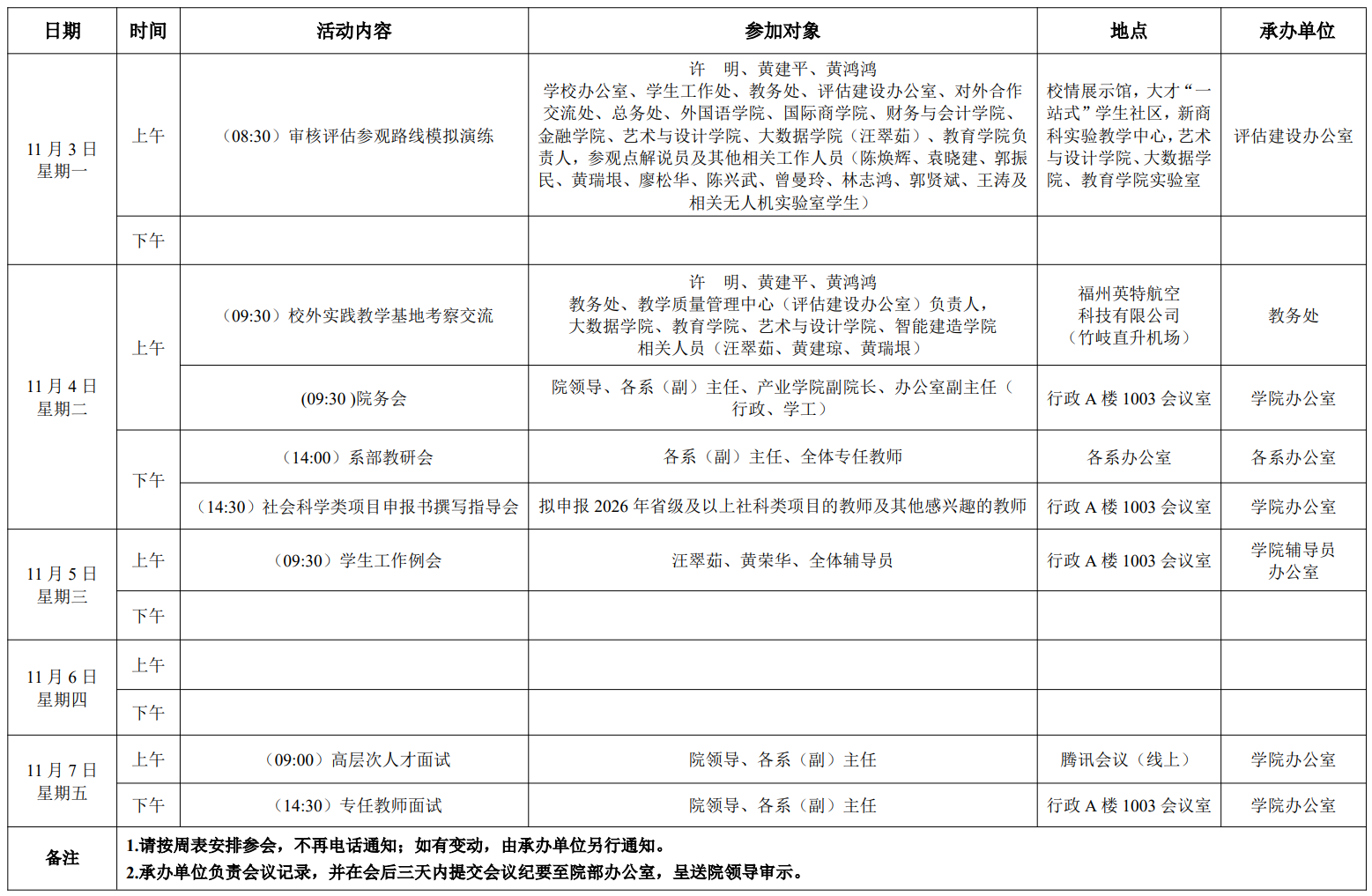 大数据学院 2025-2026 学年第一学期第 10 周活动安排表