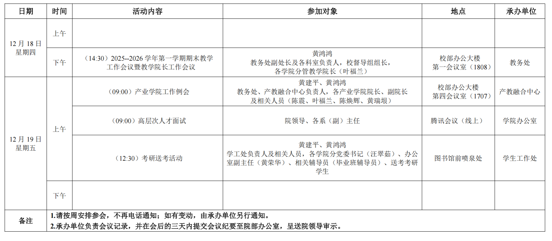 大数据学院 2025-2026 学年第一学期第 16 周活动安排表