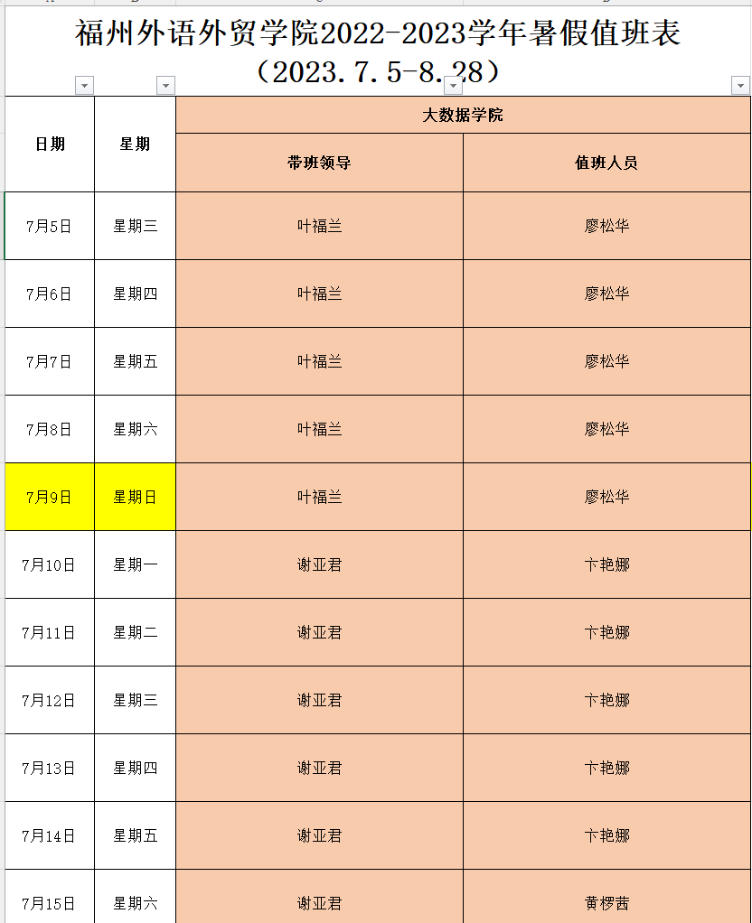 乐鱼网页版2022-2023学年暑假值班表