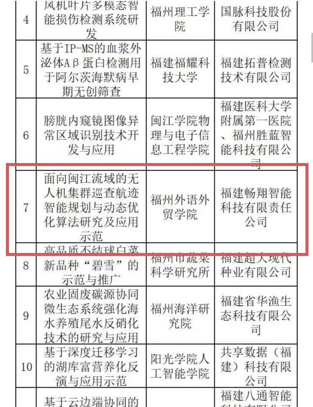 该项目联合福建畅翔智能科技有限责任公司申报,聚焦闽江流域生态保护痛点,通过智能算法破解无人机集群巡查航迹规划难题,将为流域水环境治理、应急响应提供技术支撑,是我校低空经济学科与产学研融合的又一重要突破。
