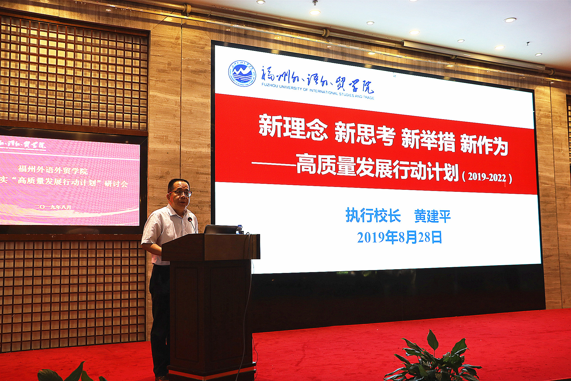 28日上午,执行校长黄建平作《乐鱼网页版高质量发展行动计划》《乐鱼网页版关于进一步彰显“外+”办学特色的指导性意见》解读。他指出,当前同类院校竞争日益激烈,高招制度改革后学校面临诸多新挑战,以及办学内涵有待进一步提升的新方向。他强调,学校要高质量发展,要瞄准新征程,明确新路径,明确新目标,布局新篇章,落实新举措,创造新作为。他要求,要着力实施一流本科教育行动,着力推进学科学位点建设行动,要着力打造精神文化品牌行动,要着力推动全方位发展保障行动,进一步培育与彰显“外+”办学特色,提高学校国际化办学水平。