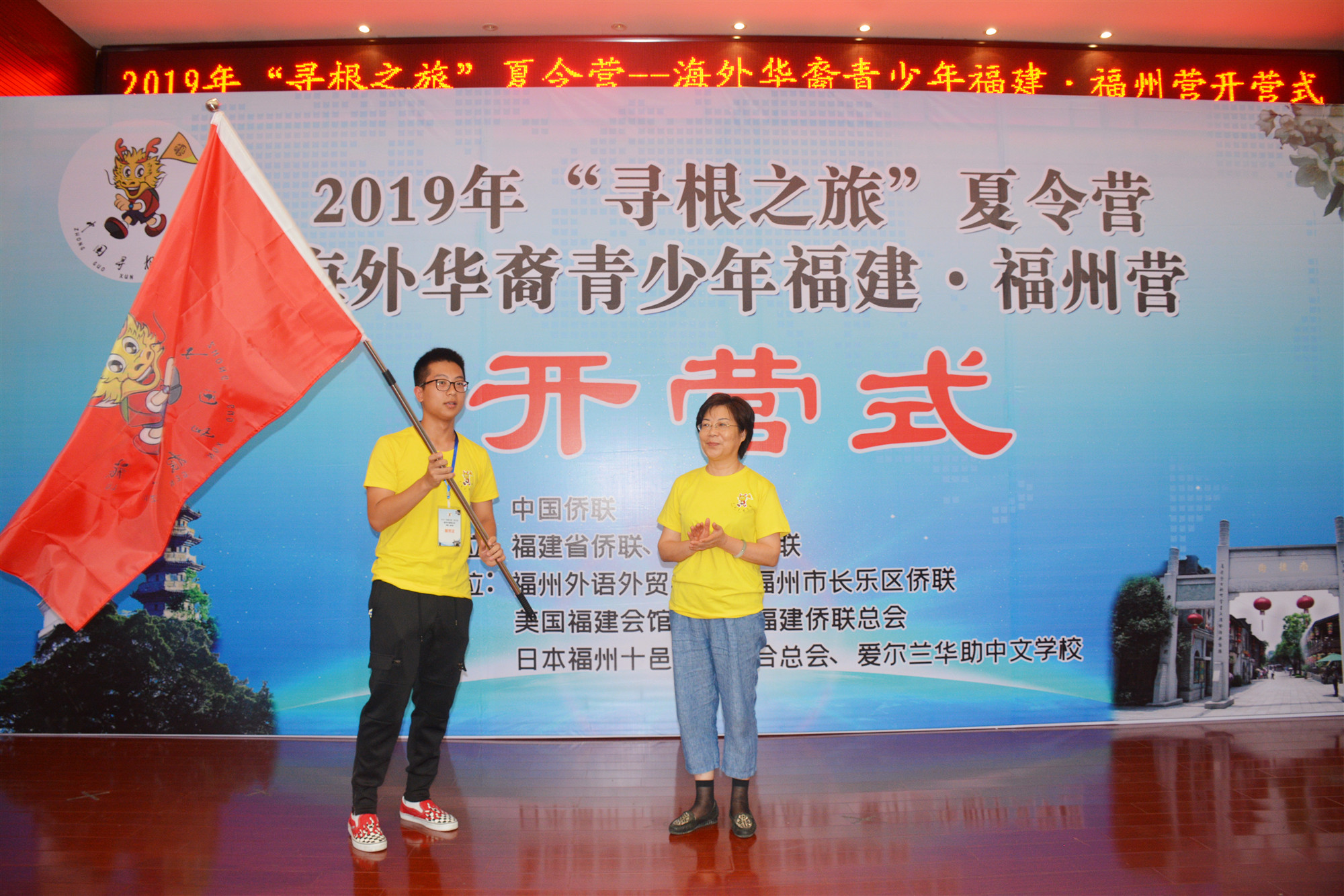 7月22日,由中国侨联主办,福建省侨联、福州市侨联承办,乐鱼网页版、福州市长乐区侨联、美国福建会馆、美国福建侨联总会、日本福州十邑社团联合总会和爱尔兰华助中文学校共同协办的2019年“中国寻根之旅”夏令营——海外华裔青少年福建·福州营在乐鱼网页版隆重开营。福建省侨联副主席、福州市侨联主席蓝桂兰,福州市长乐区委常委、统战部部长余岸明,美国福建会馆主席陈兴合,日本福州十邑社团联合总会会长施洪清,美国福建侨联总会常务副主席林晓梅,福州市侨联副主席李清华,乐鱼网页版党委副书记、副校长徐国立,以及来自福州市各县(市)区侨联负责人和美国、日本、爱尔兰的40名海外华裔青少年及领队参加开营式。