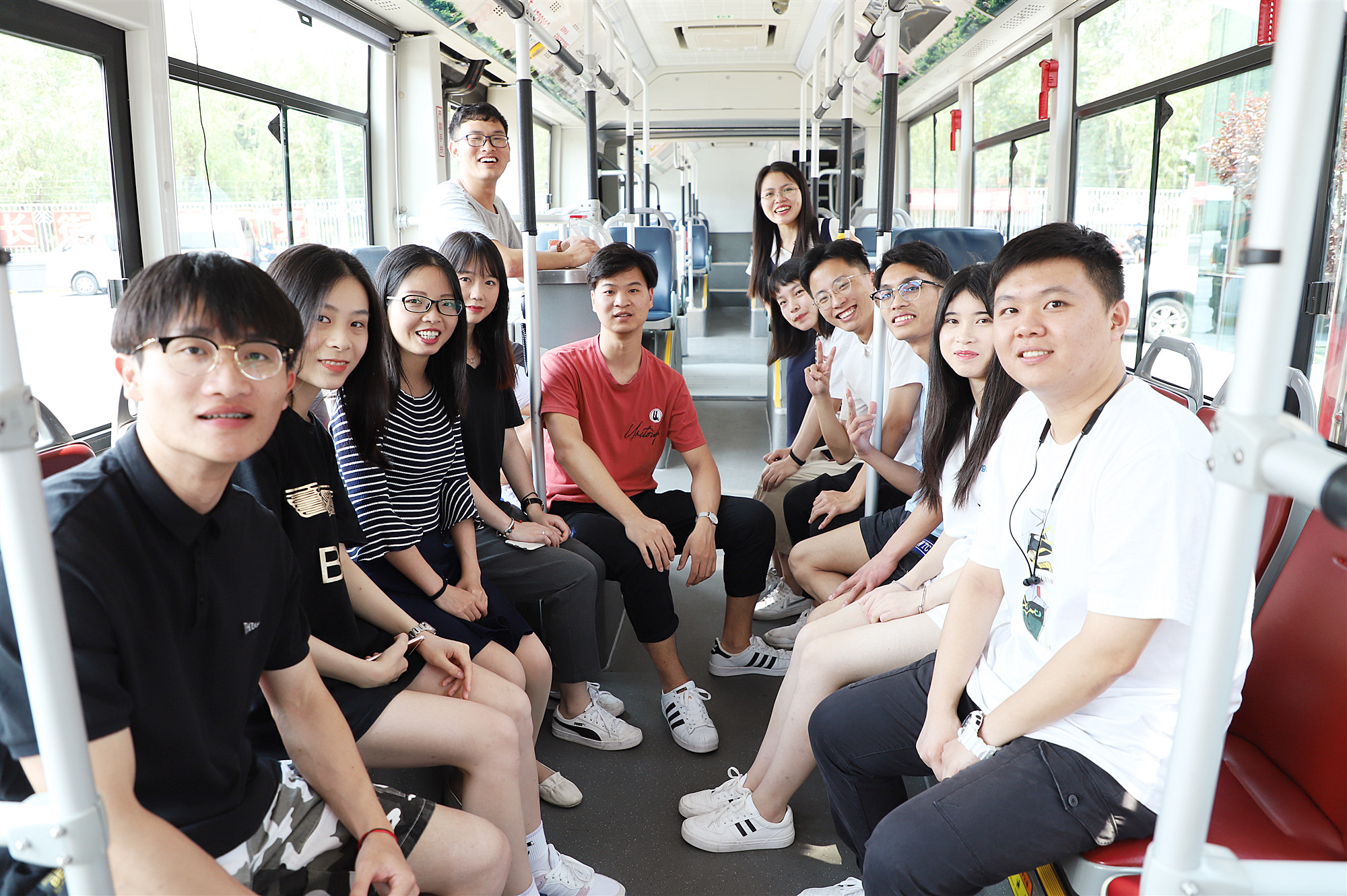 北京公交集团第四客运分公司管理人员带领同学们参观了1路新能源“中国红”纯电动车、场站充电桩、暖心驿站,介绍了北京1路党员活动室。优秀技师刘建辉带领同学们到工作室参观,体验模拟驾驶北京现代化公交车,了解车厢文化及充电桩充电使用相关情况。公司相关负责人与同学们针对大数据在公交运营车辆上的应用等方面进行交流,对大数据在北京公交的运用方面进行解说。