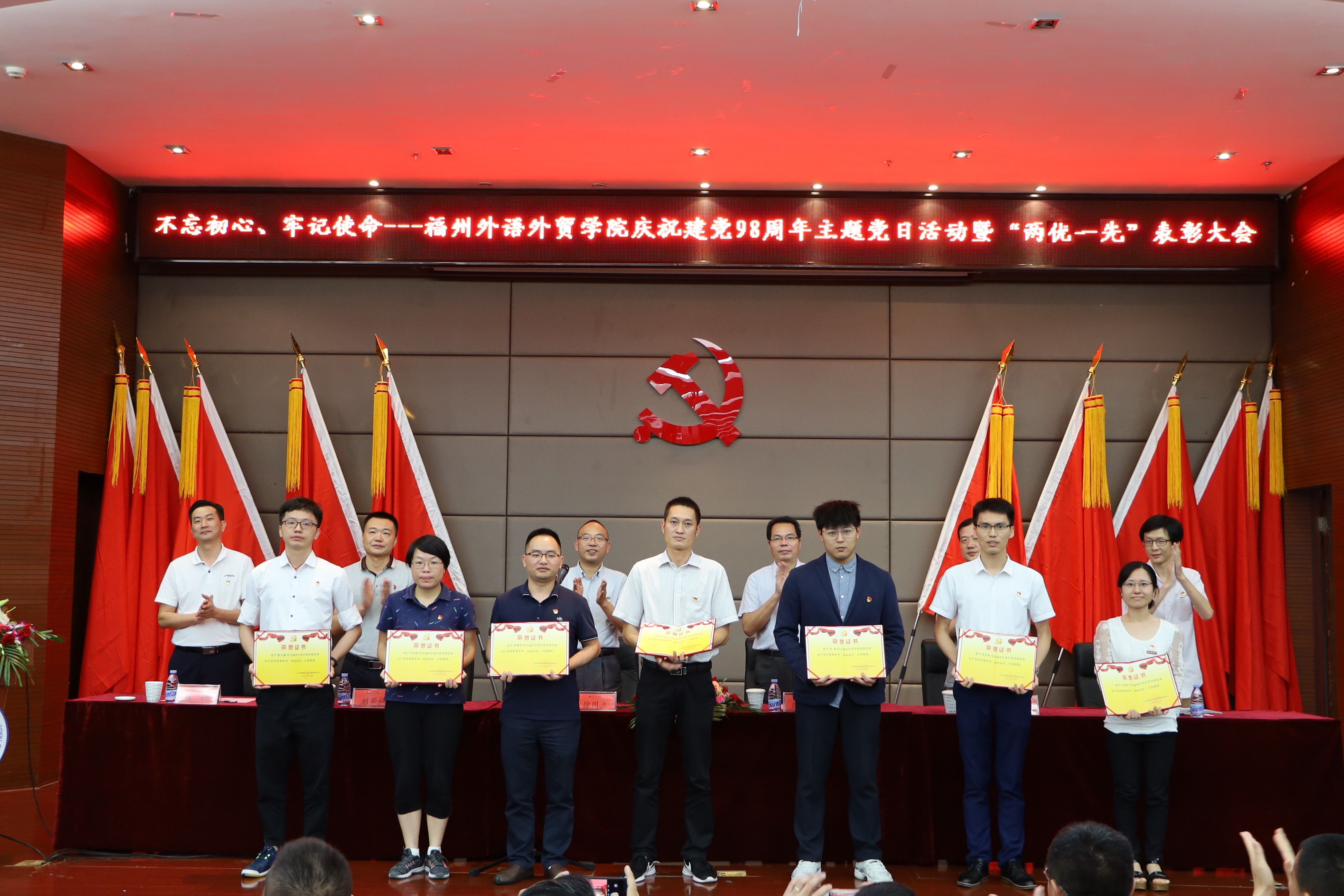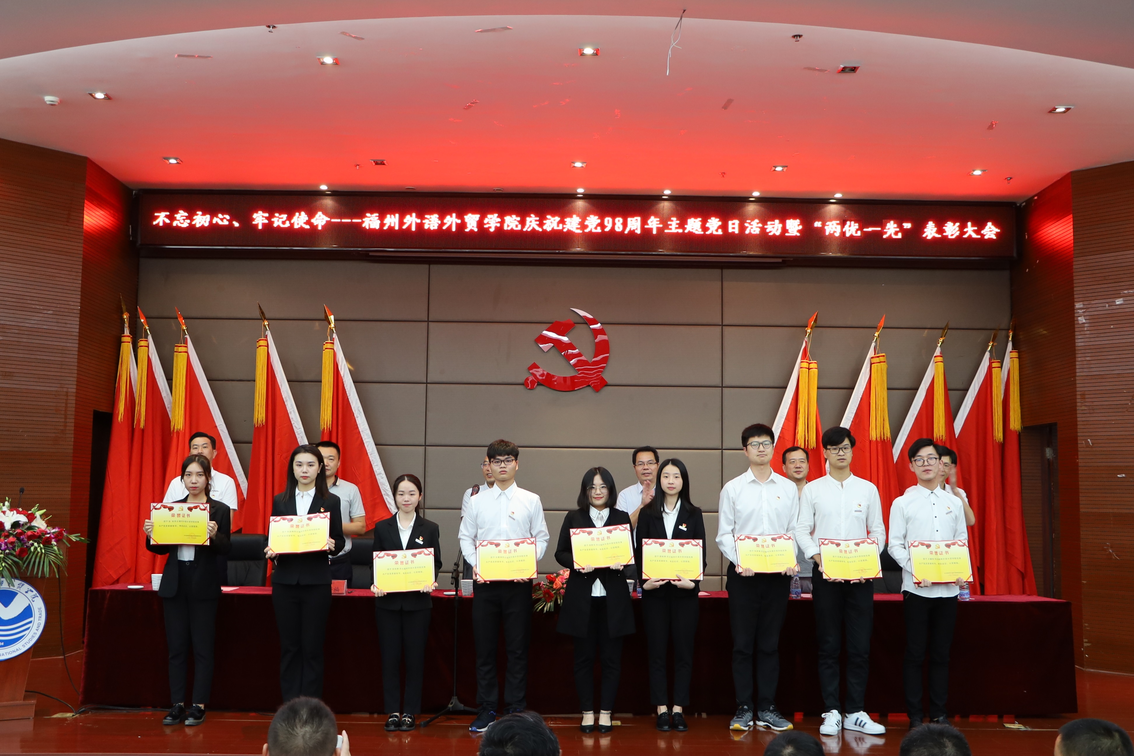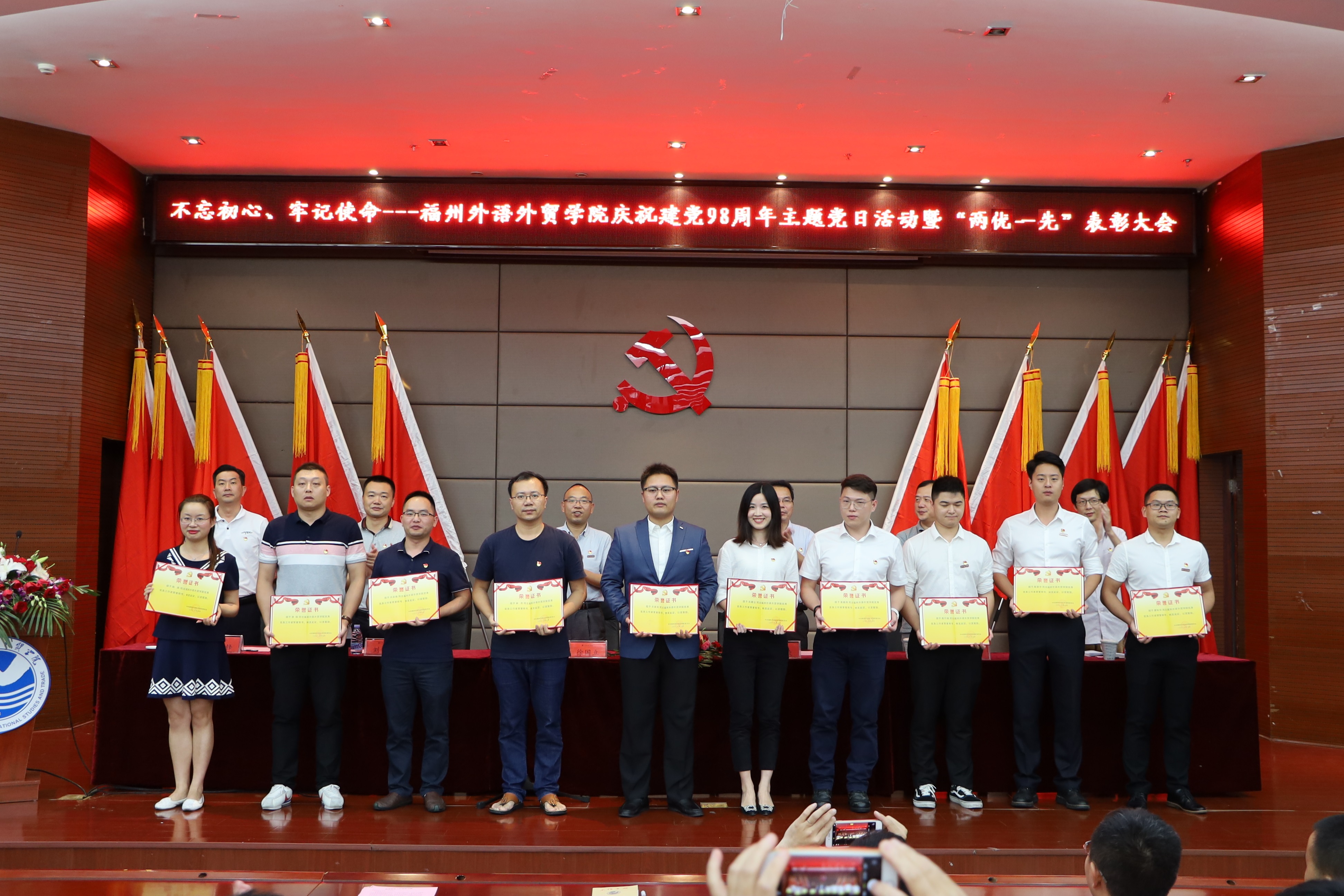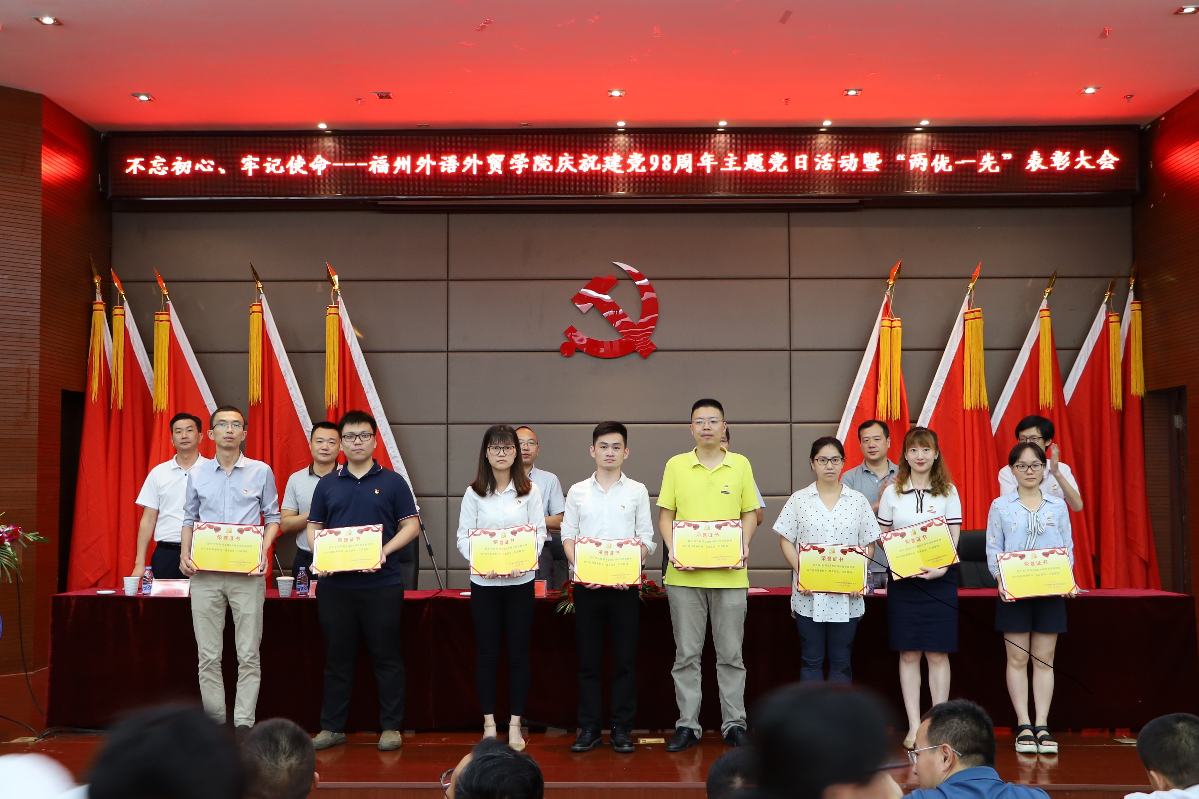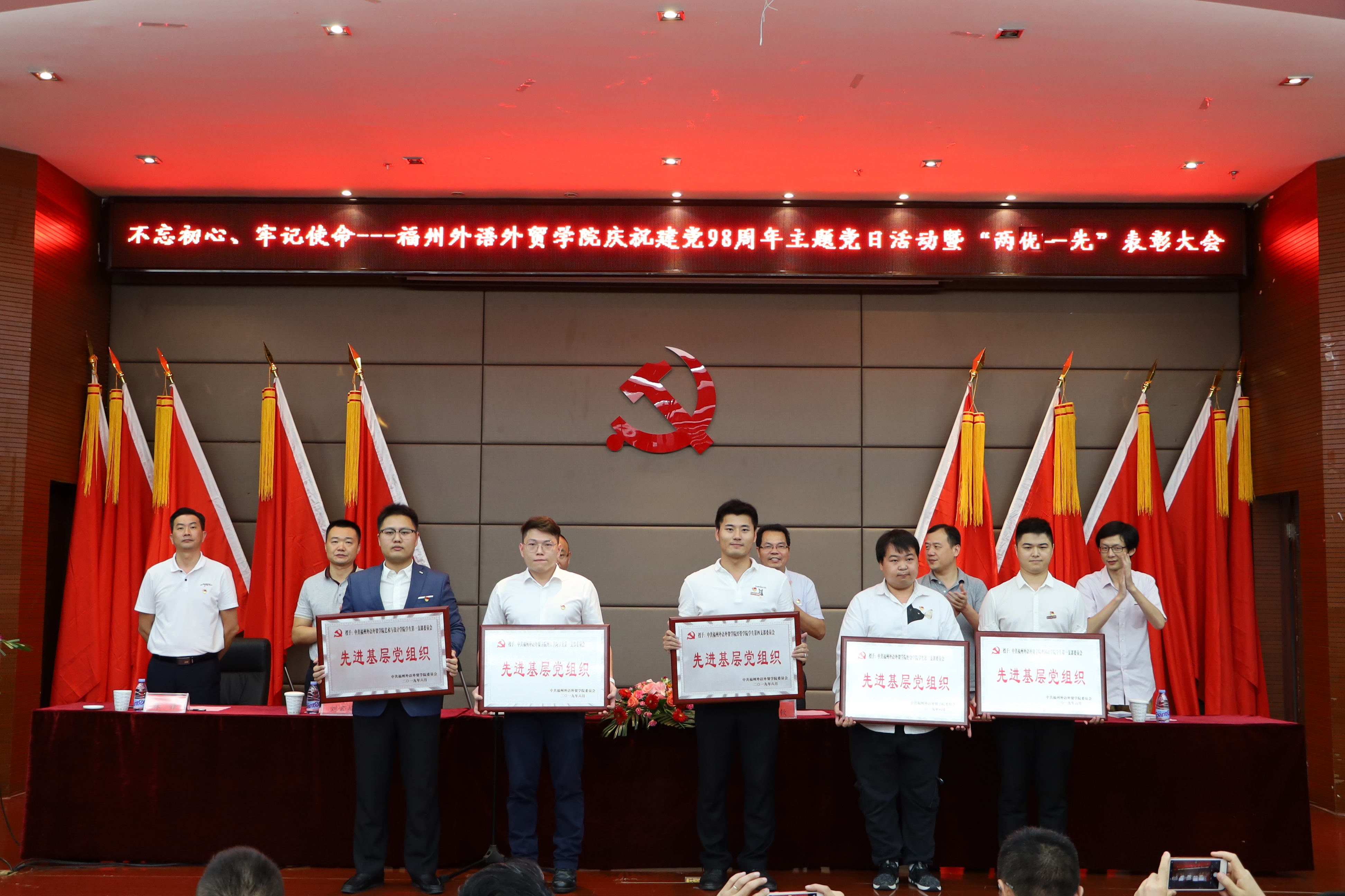 陈炳钦代表校党委向受表彰的先进集体和个人表示祝贺,向全校党员致以节日的问候,向为学校的建设和发展付出辛勤劳动并取得优异成绩的同志们及全体师生员工致以崇高的敬意。他要求,要突出政治引领,加强党的建设;要不忘初心,砥砺前行;要牢记使命,勇于担当。他强调,要始终坚持共产党员的初心和使命,树牢“四个意识”、坚定“四个自信”、做到“两个维护”,充分发挥党员的先锋模范作用,紧扣学校改革发展稳定大局,为实现建设一流民办高校的“福外梦”做出应有的贡献,为将我校建设成为人民满意的民办高校不懈奋斗。