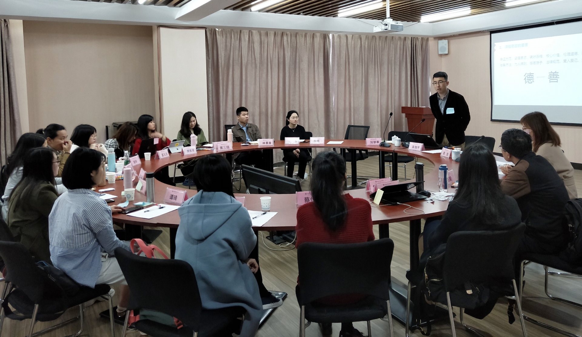 4月16日下午,由教师发展中心主办的微格教学工作坊系列活动首期培训圆满落幕。本期工作坊主题为《追求可理解的教学设计》,为期两天,面向助教职称教师,特邀福建农林大学公共管理学院吴旭平副教授、生命科学学院陈煜副教授和材料工程学院刘学莘副教授担任本期主讲教师,各学院推荐的15名教师参加了此次工作坊,报名参选我校教师教学培训师们也参加了观摩学习。