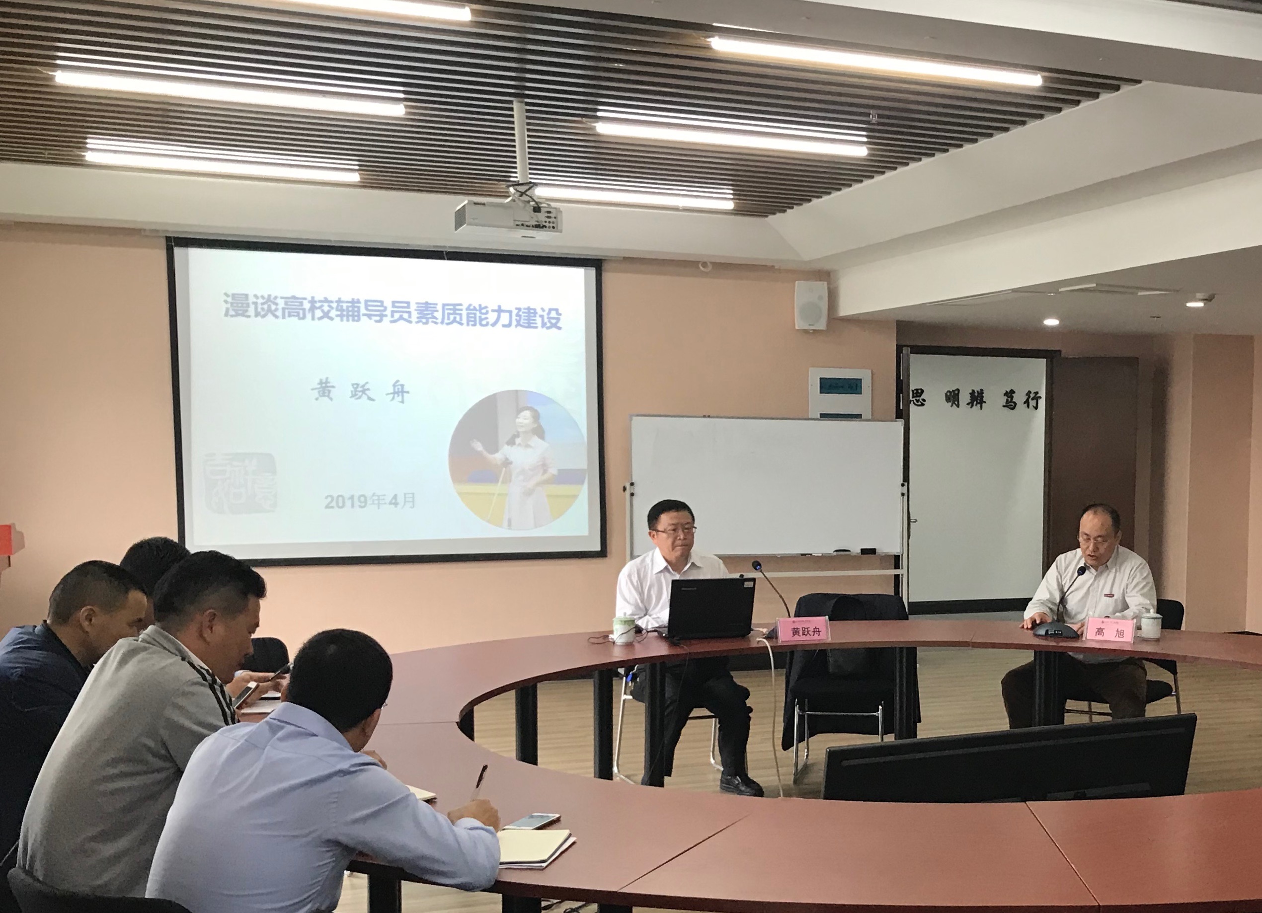 4月19日上午,我校举办本年度辅导员(素质教师)职业能力提升系列培训第二期活动,邀请福建商学院党政办公室主任黄跃舟副教授作题为《漫谈高校辅导员素质能力建设》的专题讲座,80多名辅导员参加了培训。
