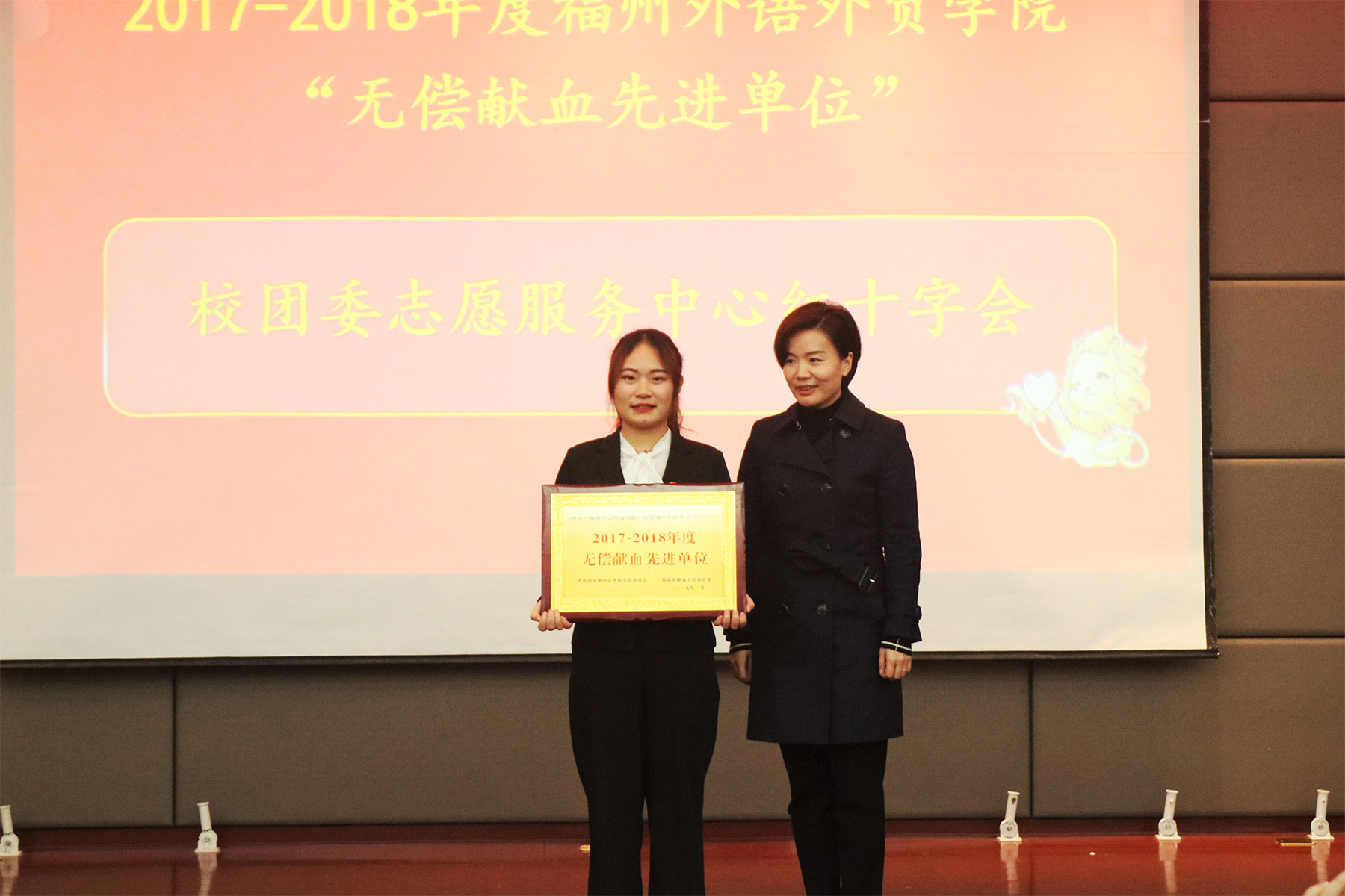会上,省血液中心与校团委联合授予校志愿服务中心红十字会为“2017-2018年度无偿献血先进单位”、理工学院为“2017-2018年度无偿献血先进院系”、王征榕等6名同志为“2017-2018年度无偿献血先进工作者”、陈雨彤等45名同志为 “2017-2018年度无偿献血先进个人”。