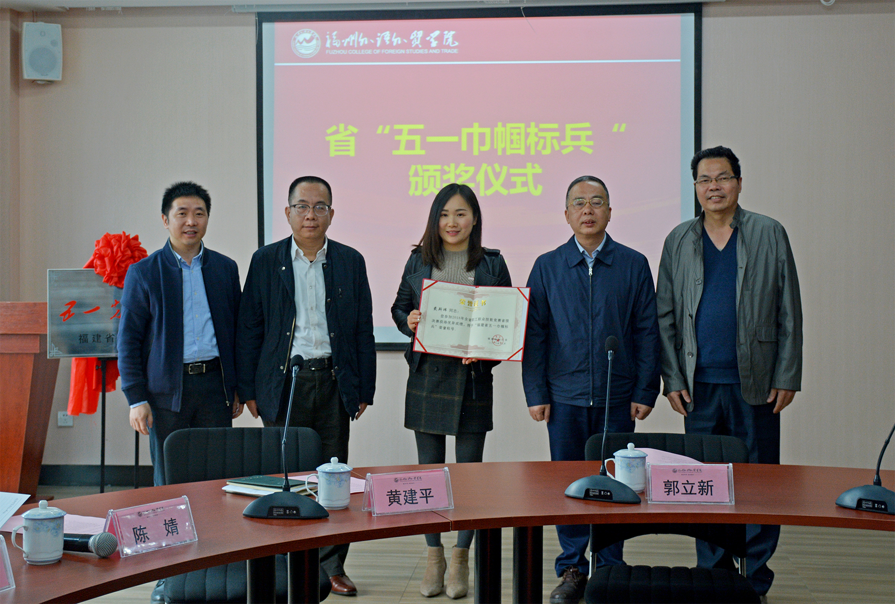 授牌仪式上,郭立新为我校教师发展中心授予省“五一先锋号”奖牌,为第四届省高校青年教师教学竞赛文科组一等奖获得者戴斯玮老师颁发了2018年福建省“五一巾帼标兵”荣誉证书并表示祝贺。