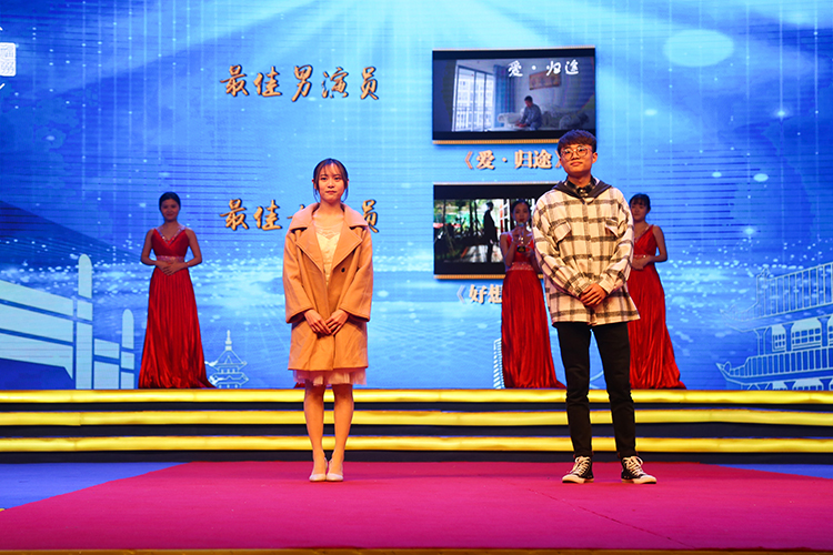 2月28日晚,由福州市文化和旅游局、福州团市委共同主办的“遇见福州”旅游微电影大赛颁奖仪式在福州广播电视台举行,由我校艺术与设计学院广编系师生制作的纪录片《遇见长乐-郑振铎》(导演:林莉娅,主创人员:游玮杰、王淑苹、章川、陈博君、侯俊晨)获得最佳导演奖,学生独立创作的剧情片《好想遇见你》(女主演:林燕萍,主创人员:戴余川、朱堃寅、林华豪、陈妍、张宁、吴春敏)获得最佳女演员奖、《爱·归途》(男主演:林凤章,主创人员:陈博君、黄高明、邓翔、陈安琦、刘杰、赵海琴)获得最佳男演员奖。