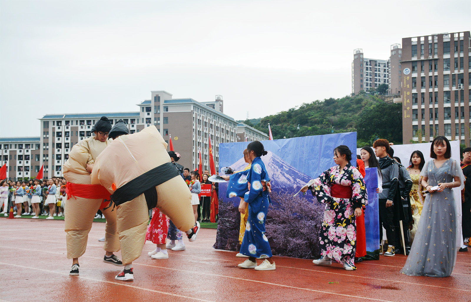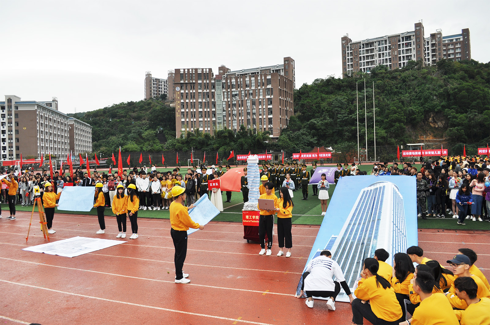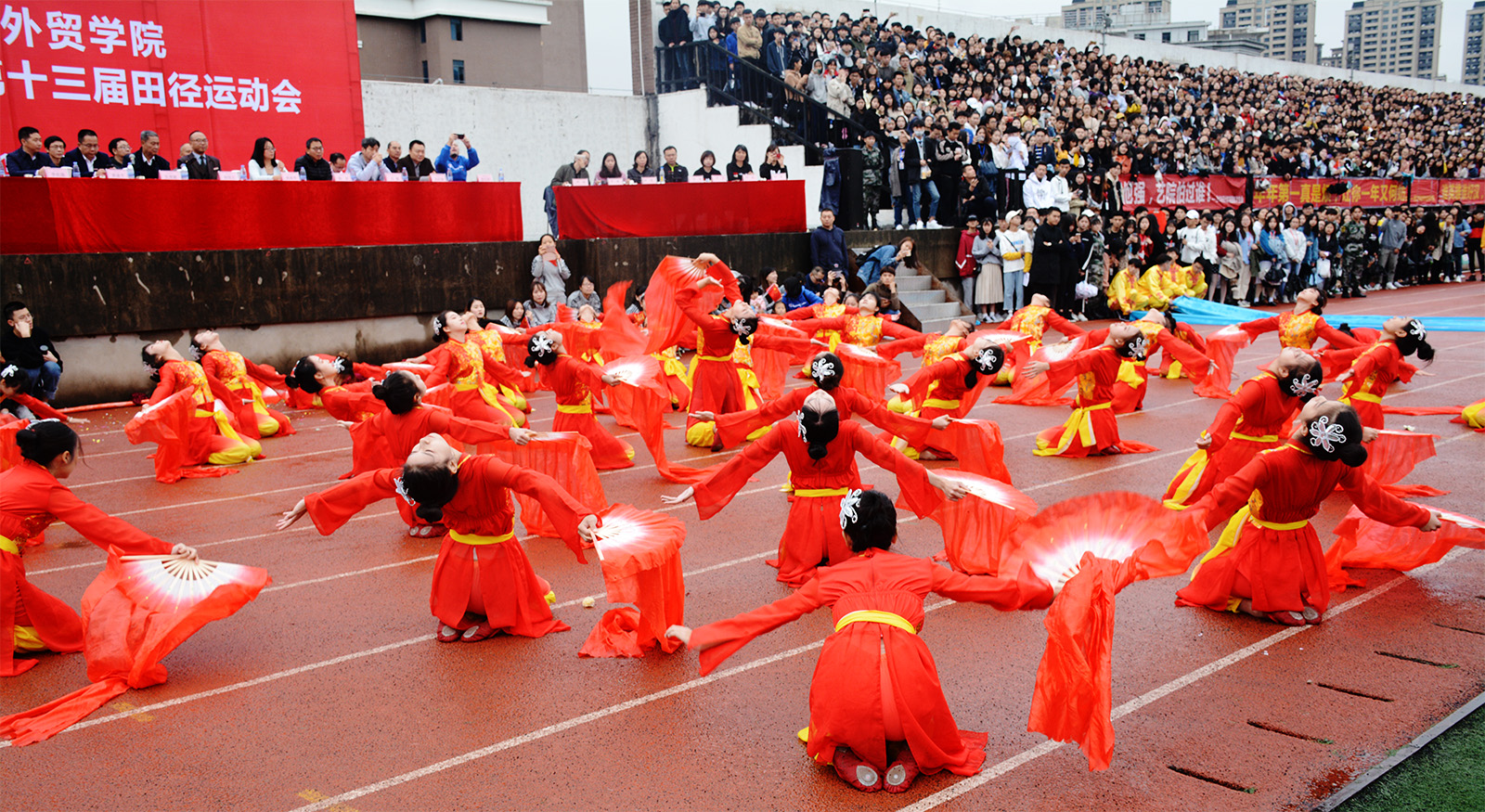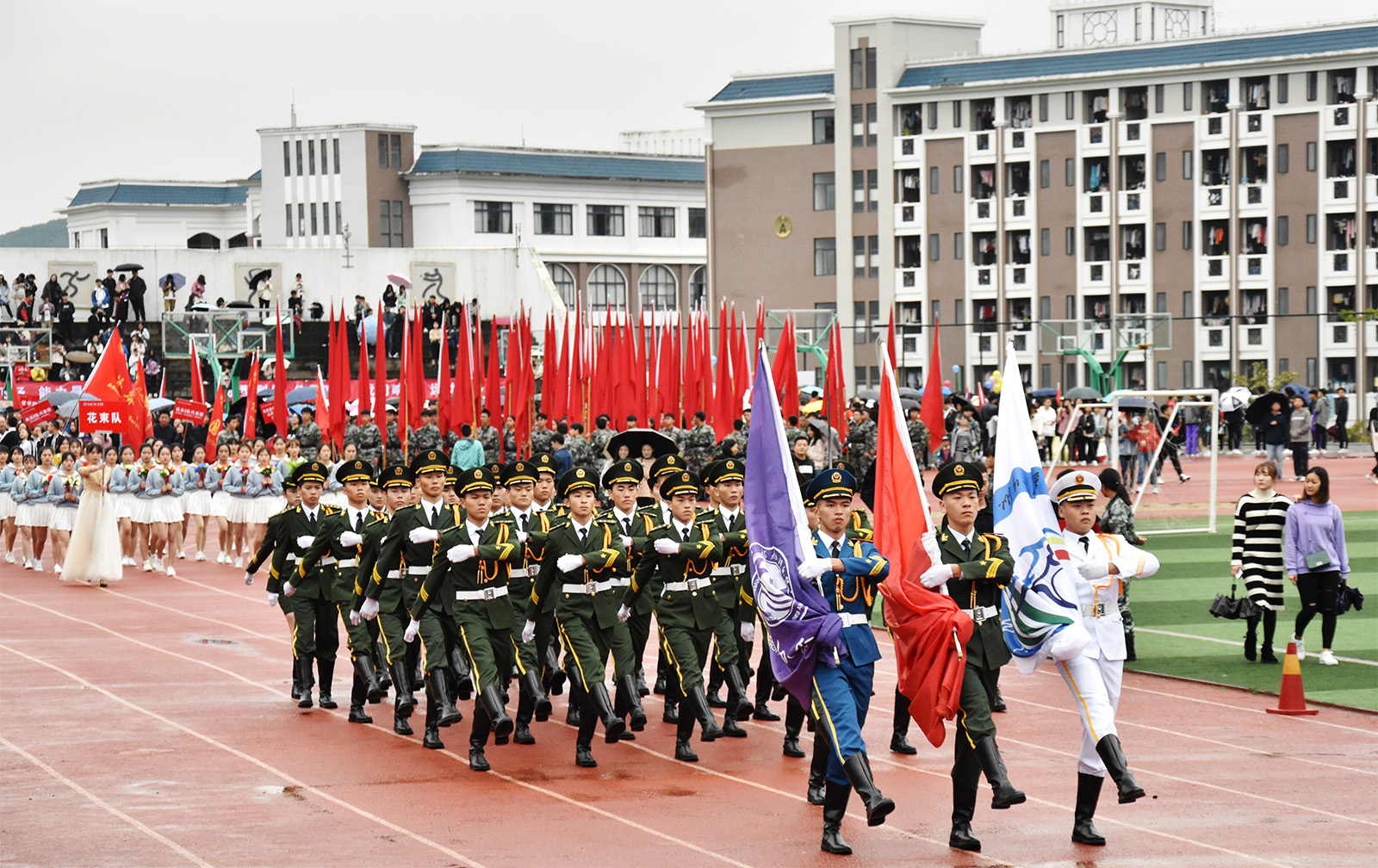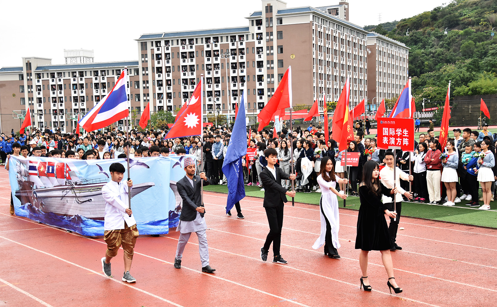 伴随着激昂奋进的节奏,国旗队、校旗队和花束队,各中心、院(部)师生组成的方阵队伍迈着整齐的步伐,喊着响亮的口号,以饱满的姿态依次列队入场。外国语学院、财金学院、经管学院、理工学院、艺术与设计学院、国际化视野精英班、国际学生、校社联、校卫队、TIGER技巧啦啦操队等组成的表演方阵创意频出,高潮迭起、尽显风采,赢得掌声、喝彩声不断。