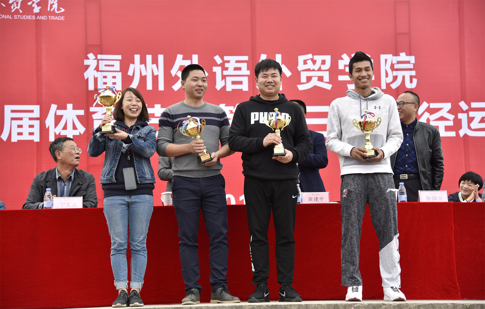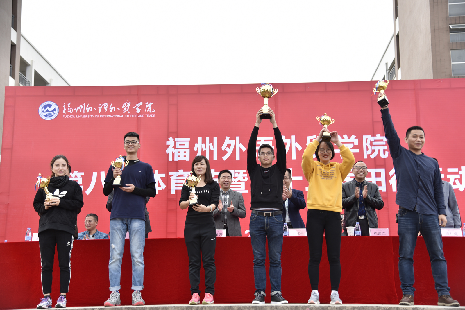 在本届体育节上,运动员们在各个项目比赛中顽强拼搏,赛出了水平,赛出了风采,取得了比赛成绩和精神文明的双丰收。财金学院、经管学院、理工学院获得学生组团体总分前三名的佳绩;财金学院、经管学院获得学生组集体“体育道德风尚奖”;艺术与设计学院获得学生组集体“优秀组织奖”;财金学院获得集体“入场式优秀表演方阵”一等奖,经管学院和国际生班获得集体“入场式优秀表演方阵”二等奖,理工学院、艺术与设计学院、国际化视野精英班获得集体“入场式优秀表演方阵”三等奖。王淑丽、张宝、普加、程婷、邱齐飞、刘煜鑫、王媛媛、林丹妮、贺行飞、江晓东、胡丽云、阮氏冬等46名同学获得个人“体育道德风尚奖”。机关4队、马克思主义学院及公共教学部、财金学院、经管学院、理工学院、艺术与设计学院获得教工组团体总分前六名的佳绩;外国语学院、机关1队和机关2队获得教工组“体育道德风尚奖”;机关3队获得“优秀组织奖”。