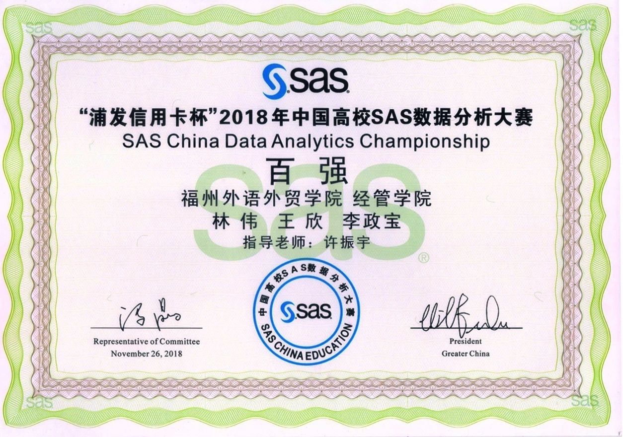 乐鱼网页版学子挺进“浦发信用卡杯”2018年中国高校SAS数据分析大赛