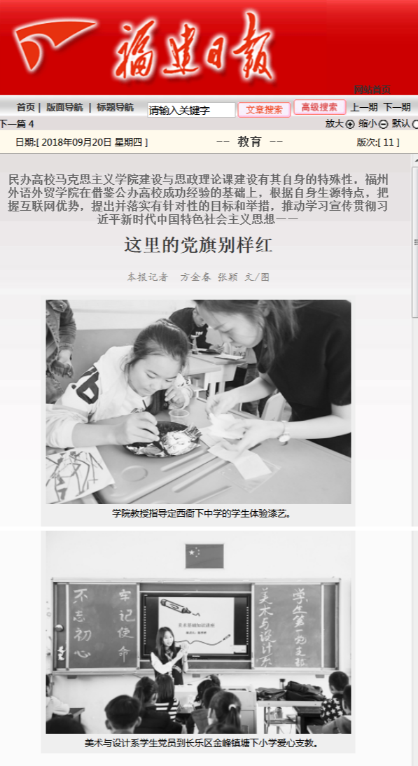 福建日报以《这里的党旗别样红》为题报道了我校思政党建工作情况