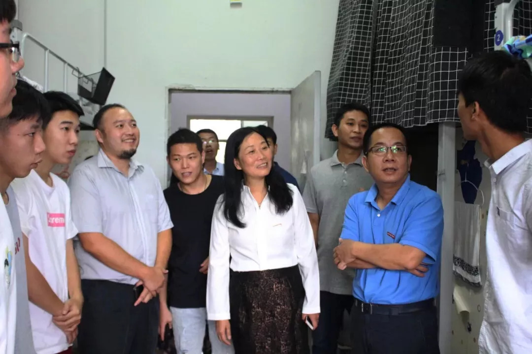 9月8日至9日,我校迎新工作全面展开,来自全国各地朝气蓬勃的2018级新生满怀憧憬走进福外,用欢声笑语点缀着校园,为学校增添了青春活力。9日下午和傍晚,校长沈斐敏,党委书记陈炳钦,常务副校长黄建平,党委副书记、副校长徐国立,校长助理吴钦红等领导分别来到新生宿舍,看望来自各地的新生,慰问迎新一线的师生员工。