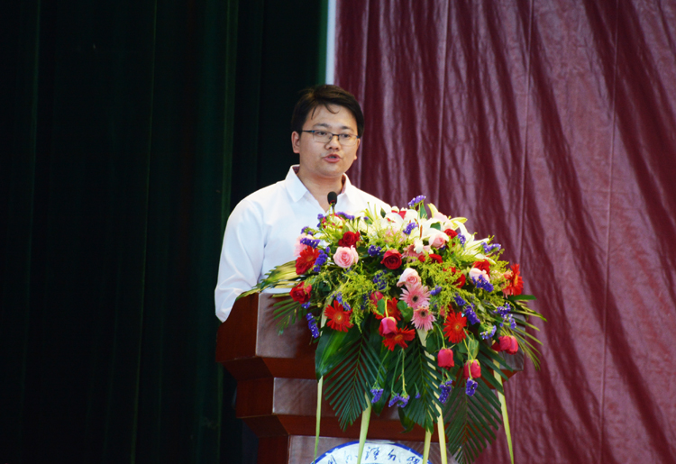 工商系康海军博士作为教师代表,回忆了与同学们共同学习成长的美好经历,并勉励2018届本科毕业生时刻不忘继续学习,胸怀天下,脚踏实地,敢于吃苦、实干有为,以精神和品格影响他人,以学识和才智服务、奉献中国特色社会主义新时代。