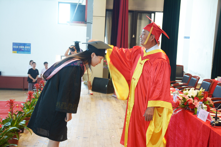 最后,沈斐敏为2018届优秀本科毕业生及国际化视野精英班毕业生一一拨正流苏,握手祝福,并逐一合影留念。