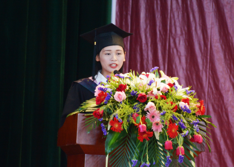2018届本科毕业生代表,国家励志奖学金、国家授权创新型实用型专利奖、全国大学生电子商务“创新、创意、创业”挑战赛福建赛特等奖和全国总决赛一等奖、福州市教育系统“优秀团干部”获得者,国际化视野精英班邹凤同学发言。她代表全体毕业生向母校和师长表达了最衷心的感谢和最崇高的敬意,表示将牢记学校领导、老师们的殷切期望,带着激情和理想追梦,带着奋斗和奉献圆梦,回报辛苦培育我们的父母、老师、学校和社会,让青春在奋斗中绽放光彩!