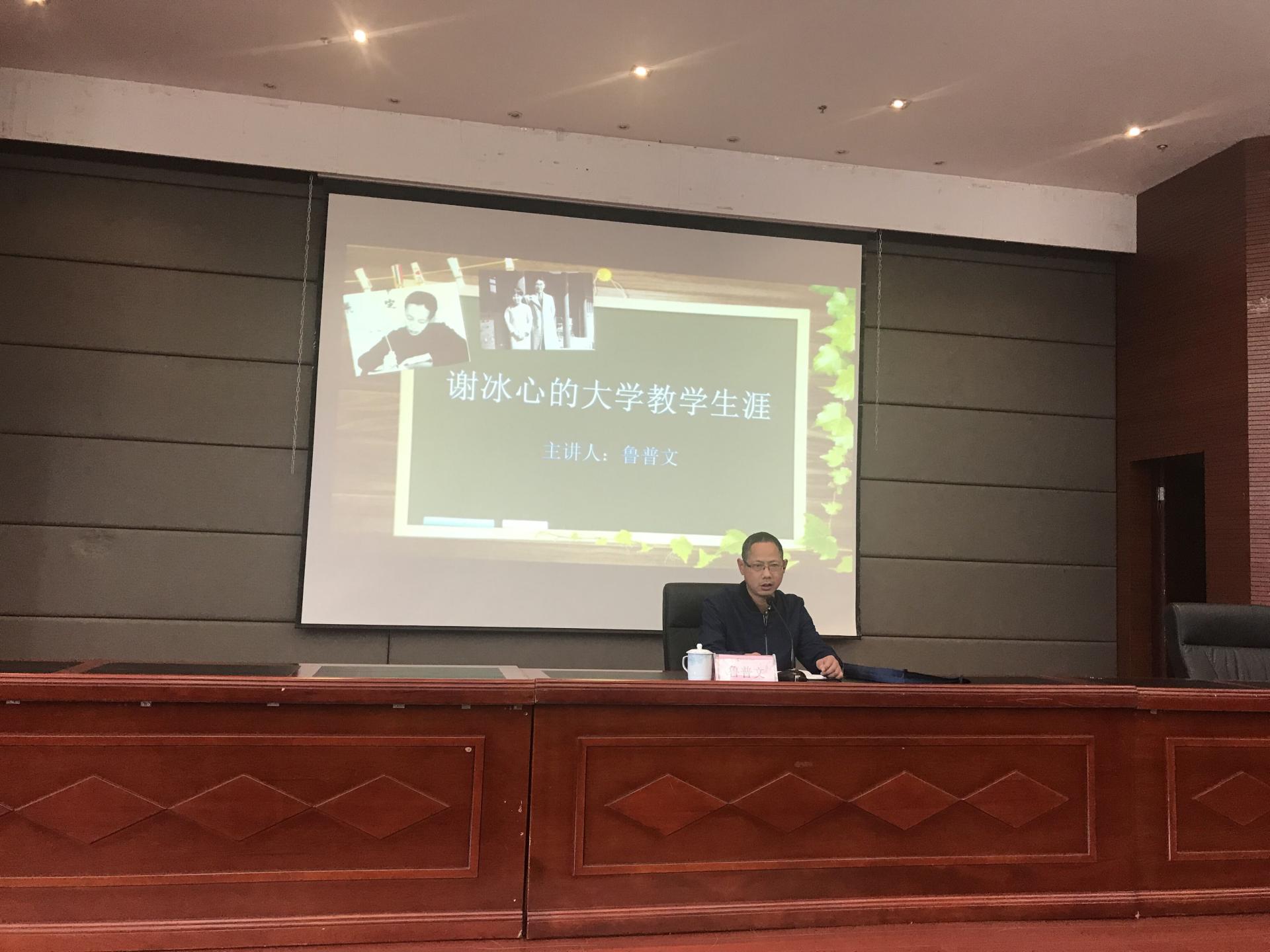 开幕式上,双方代表续签了“共建大学生教育实践基地”协议,冰心文学馆向我校图书馆赠送了冰心作品以及关于冰心研究的有关书籍。随后,冰心文学馆学术部副主任、冰心研究会秘书长鲁普文作了题为“谢冰心的大学教学生涯”的讲座。冰心文学馆来宾还应邀参观了我校“走进爱的世界——冰心生平与创作”图片展。