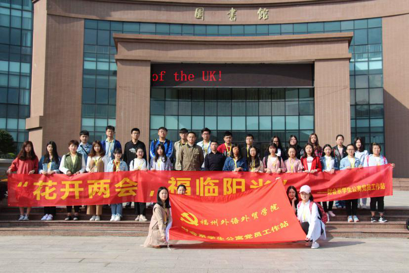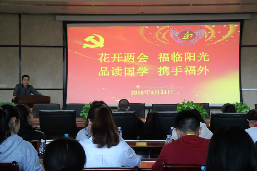 3月31日,财会系党总支学生党员来到阳光学院,与阳光学院商学院学生党员开展以“花开两会,福临阳光,品读国学,携手福外”为主题的支部共建活动。