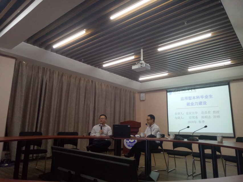 4月12日,我校经贸系陈昭志副教授邀请北京大学教育学院副院长岳昌君教授,在教师发展中心多功能研讨室联袂举办“应用型本科毕业生就业力建设”学术讲座,经贸系贸易风俱乐部、经济统计学17级四班、经济统计学15级和国际视野精英班17级的同学们到场聆听。