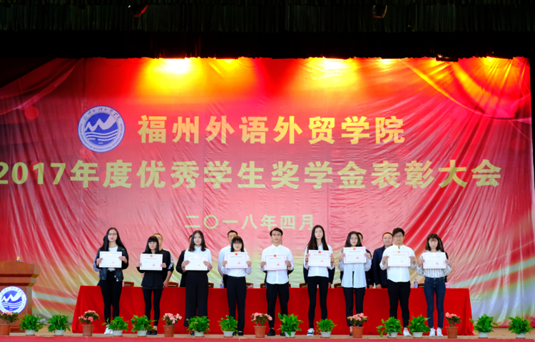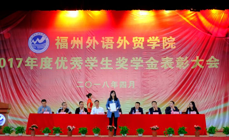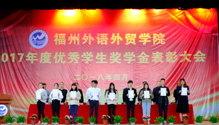 学生发展中心负责人宣读了2017年度优秀学生奖学金表彰系列评选结果,与会领导为获奖代表颁奖。大会共表彰了“国家奖学金”获得者18人,“国家励志奖学金”获得者430人,“综合奖学金”获得者359人,“新生奖学金”获得者77人,“外语学习优秀奖”获得者542人,“考研之星”获得者10人,“创业之星”获得者16人。本次各类奖助学金总金额411.05万元,受到奖励和资助的同学共有1452人次。