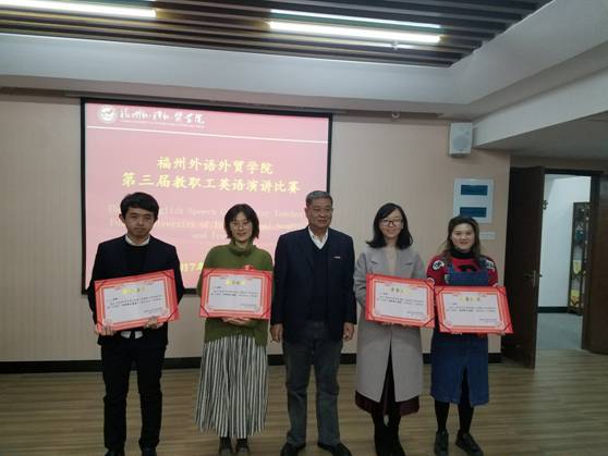 12月26日,我校第三届教职工英语演讲比赛在教师发展中心多功能研讨室成功举行,沈斐敏校长亲临比赛现场为获奖选手颁奖。