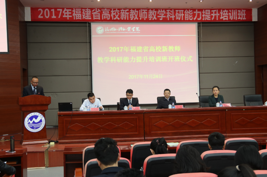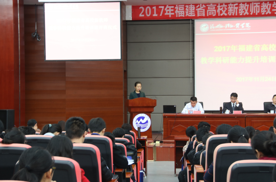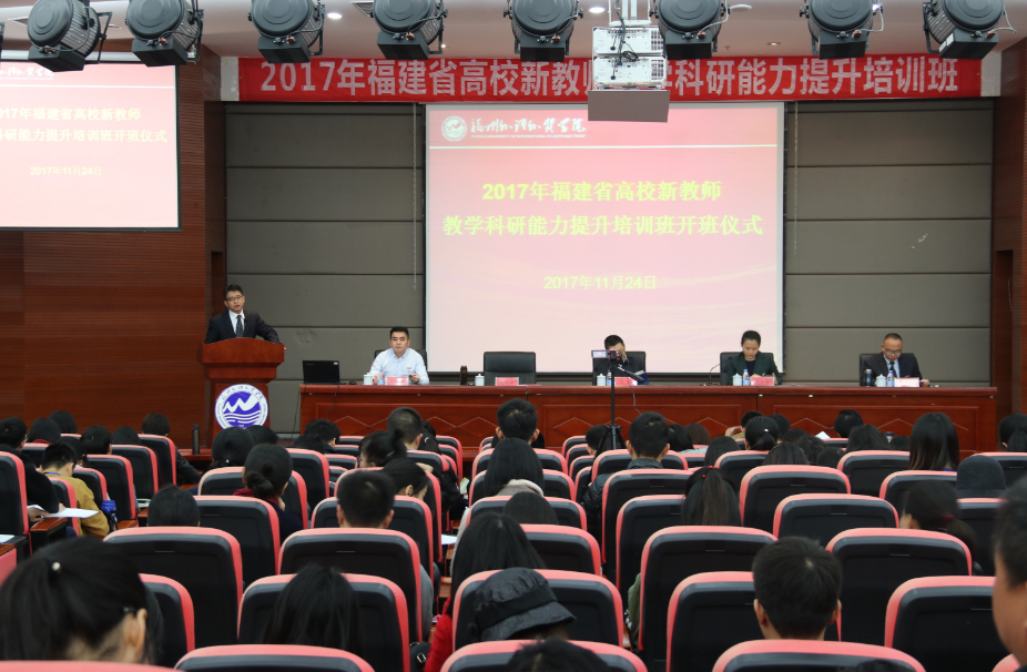 11月24日,由省教育厅主办,省高等学校师资培训中心承办,我校协办的2017年福建省高校新教师教学科研能力提升培训班在我校学术报告厅开班。省教育厅教师工作处副处长郑芳芳,省高等学校师资培训中心常务副主任陈振祯博士,我校党委副书记、副校长徐国立副教授及来自全省87所高校的152位学员参加了开学仪式。上海应用技术大学校长、博士生导师陆靖教授应邀出席开学仪式,并在仪式结束后为全体学员做了精彩的报告。