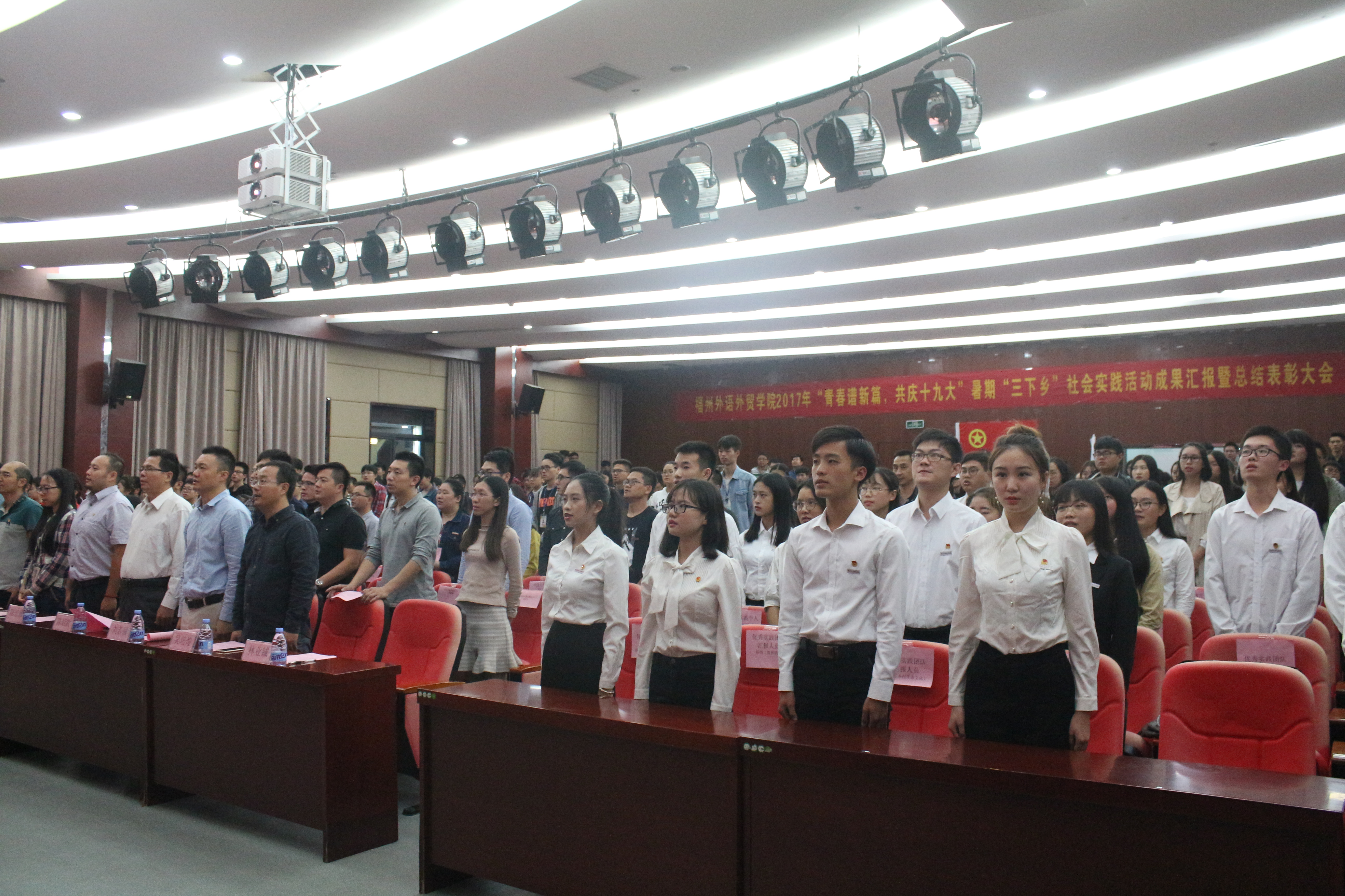 10月24日晚,2017年暑期“三下乡”社会实践活动成果汇报暨总结表彰大会在校学术报告厅隆重举行。校党委书记陈炳钦、学生发展中心负责人、各学生分党委(党总支)书记、马克思主义学院负责人、各团总支书记,各实践队师生代表300余人参加大会。