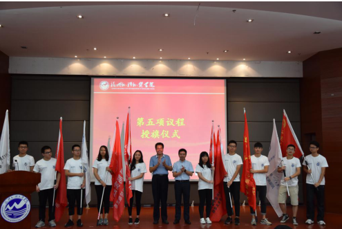 陈炳钦和季祖强一同为2017年暑期“三下乡”社会实践10支重点服务队授旗,我校2017年度暑期“三下乡”社会实践活动正式启动。