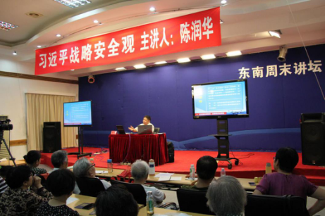陈润华副教授以通俗易懂的语言,从“中国梦”的实施与实现,安全是发展前提、发展是安全保障;建设国家生存的安全平台,创造合作共赢的周边环境;创新建设“一带一路”国家发展平台,促进世界和平发展等方面,论述习近平总书记的战略安全观。讲座中引经据典、由点及面,收到很好的反响。