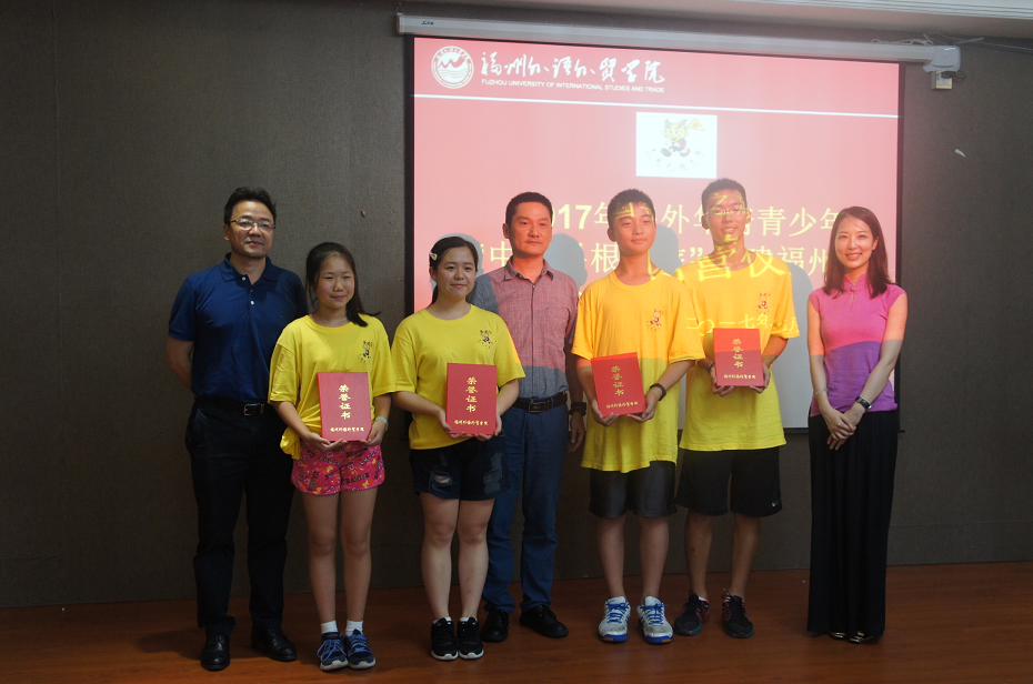 7月21日,2017年海外华裔青少年“中国寻根之旅”夏令营·福建福州营在我校圆满闭幕。致公党福建省委专职副主委吴棉国,致公党福建省委常委、秘书长王惠忠,致公党福建省委留学归国人员工委员会主任章涛,福州市外事侨务办公室副主任张素燕,我校校长、博士生导师沈斐敏教授,董事长助理、校长助理吴新星,以及来自美国、加拿大的侨领,来自美国、德国、法国、加拿大、西班牙等国的90名华裔青少年参加了闭幕式。