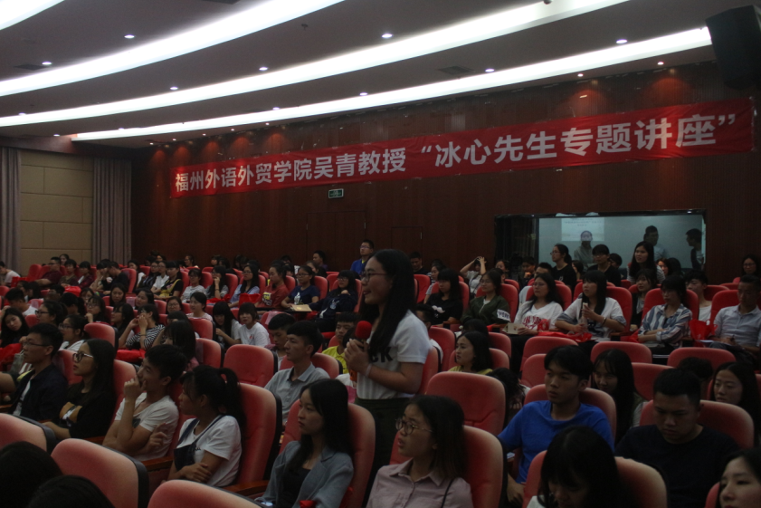 吴青教授从汉字繁体字“人”、“爱”、“信”、“听”等字的内涵分析和内容进行讲解,鼓励大家要做说真话、做实事、有责任、敢担当的人;要大爱在心,帮助弱势群体,公正平等地为人处事。吴青教授还深情讲述了母亲冰心对她的教育和影响,并对大学生们提出了殷切希望,更向他们传达了强烈的社会责任意识。