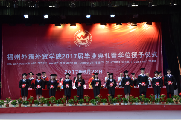 毕业典礼在全场高唱庄严的国歌声中正式开始。毕业典礼由党委副书记、校长助理季祖强副教授主持。校学位评定委员会副主席、常务副校长黄建平教授宣读《福州外语外语外贸学院关于准予2017届本科学生毕业的决定》、《福州外语外语外贸学院关于授予2017届本科毕业生学士学位的决定》。校学位评定委员会副主席、党委副书记、副校长徐国立副教授宣读《关于表彰福州外语外语外贸学院2017届优秀本科毕业生的决定》、《福州外语外语外贸学院关于授予2017届考取硕士研究生学生“校长嘉奖令”的决定》。随后,举行2017届优秀本科毕业生与“校长嘉奖令”颁奖仪式。