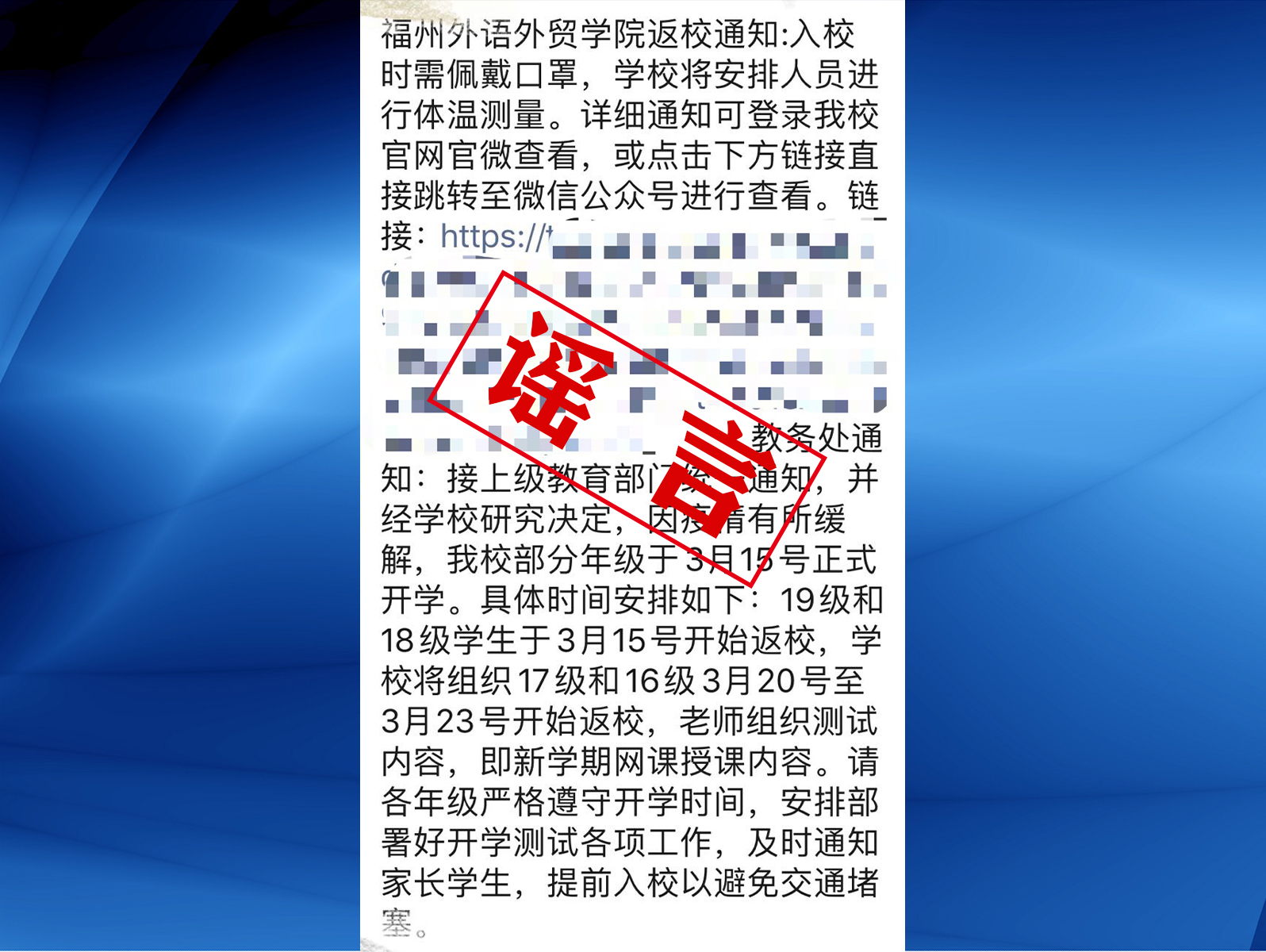 在此郑重声明,我校2020年春季开学时间和返校安排目前尚未确定,我校将严格执行教育部、省教育厅有关要求,严格按照疫情防控有关程序和安排确定开学时间,报经省教育厅批准后正式通知。