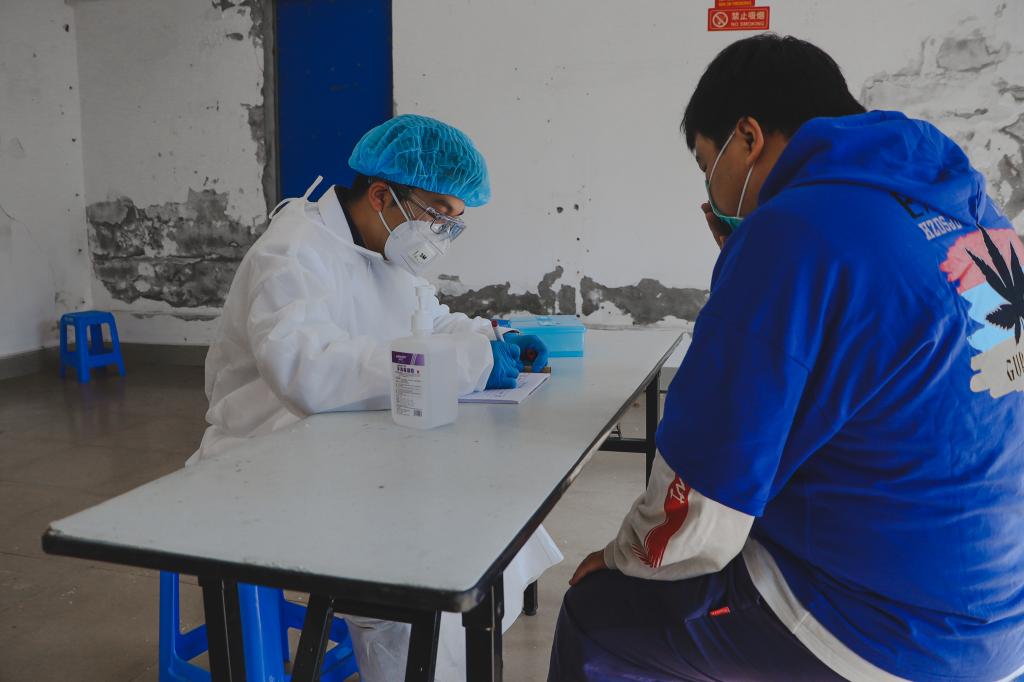开学后发热学生自行前往医务室检查场景在校医务室进行,根据模拟情境,在学生宿舍内发现一例体温过高、干咳、胸闷等新冠肺炎“疑似症状”学生,学校防疫指挥部立即启动应急处置机制,依次进行了医生到场测温、报告处置、急救车转运临时隔离地点、密切接触者隔离、场地消毒、后续排查等的规范处置,整个过程指挥有力,环节紧凑,应急人员分工明确,总体完成良好。