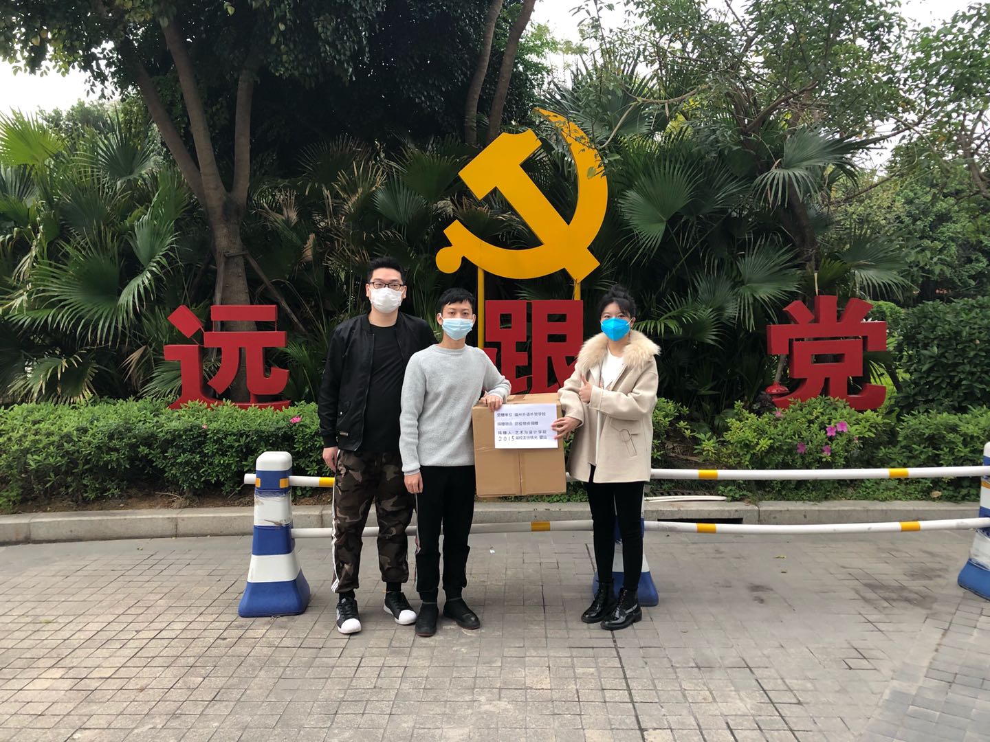 ▲动画专业校友徐铭光、瞿汕共同捐赠防护口罩