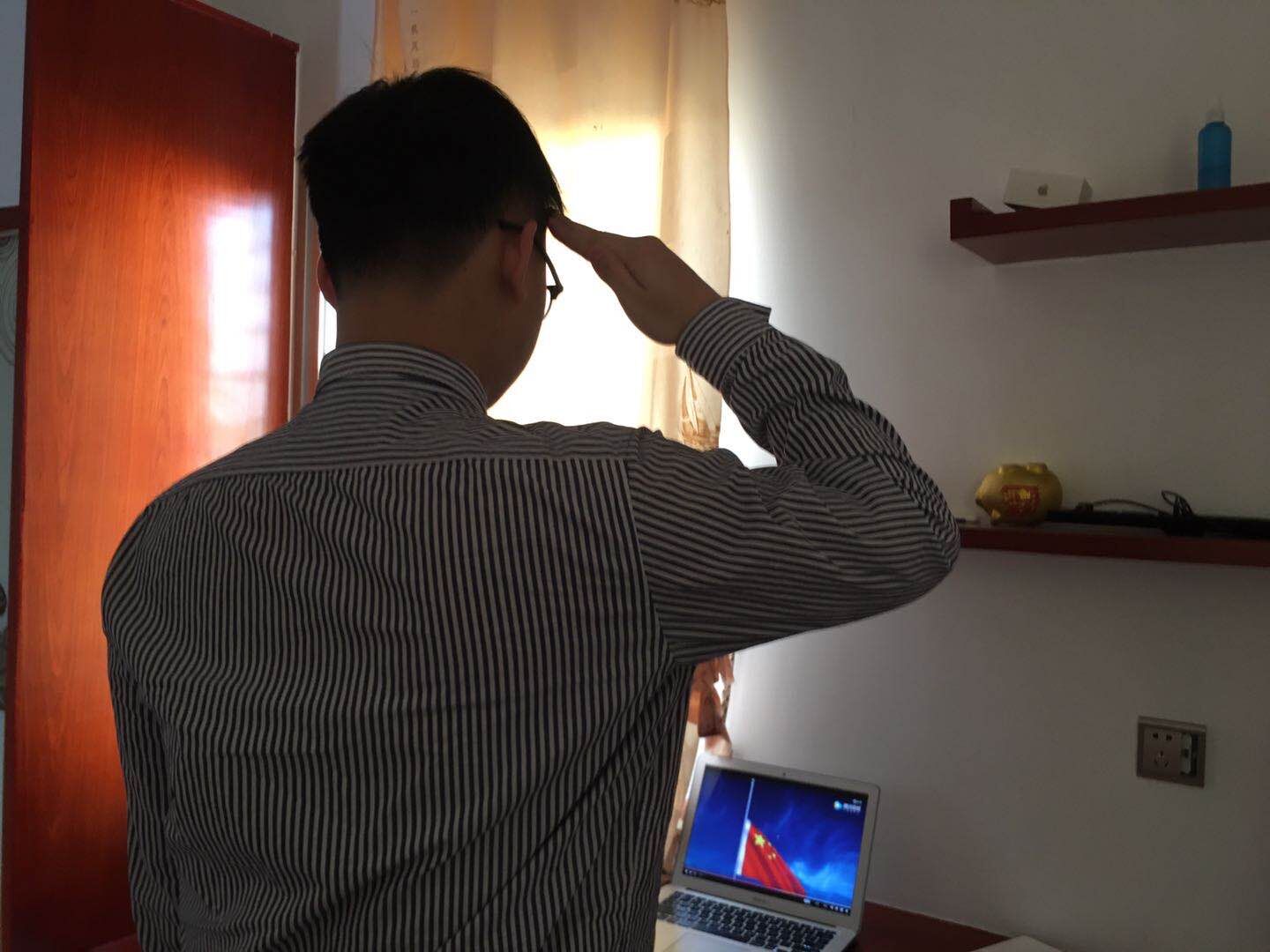 由于疫情的原因,我们用这种隔屏相望直播的方式进行升旗仪式。当国旗冉冉升起在熟悉的校园里,屏幕前的我们虽隔千里却心心相依。