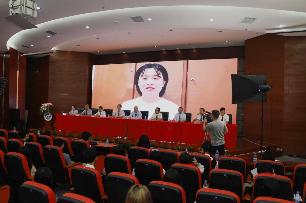 现场通过视频连线,邀请了艺术与设计学院2018级广播电视编导专业鲍妮同学作远程视频发言,她代表全体在校生祝贺学长学姐们如期完成学业,表示将以学长学姐们为优秀榜样,认真学习,努力拼搏,并祝愿学长学姐们前程似锦。