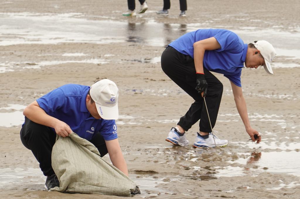 在“净滩捡跑”环节中,我校志愿者们纷纷行动起来,由近及远,全方位、地毯式地对海滩进行清洁。在这过程中,志愿者们三两成组,在沐浴海风,享受海岸的美丽的同时,化身为海洋的清洁使者,横扫海滩的废弃物,为守护海岸线尽自己的一份职责。